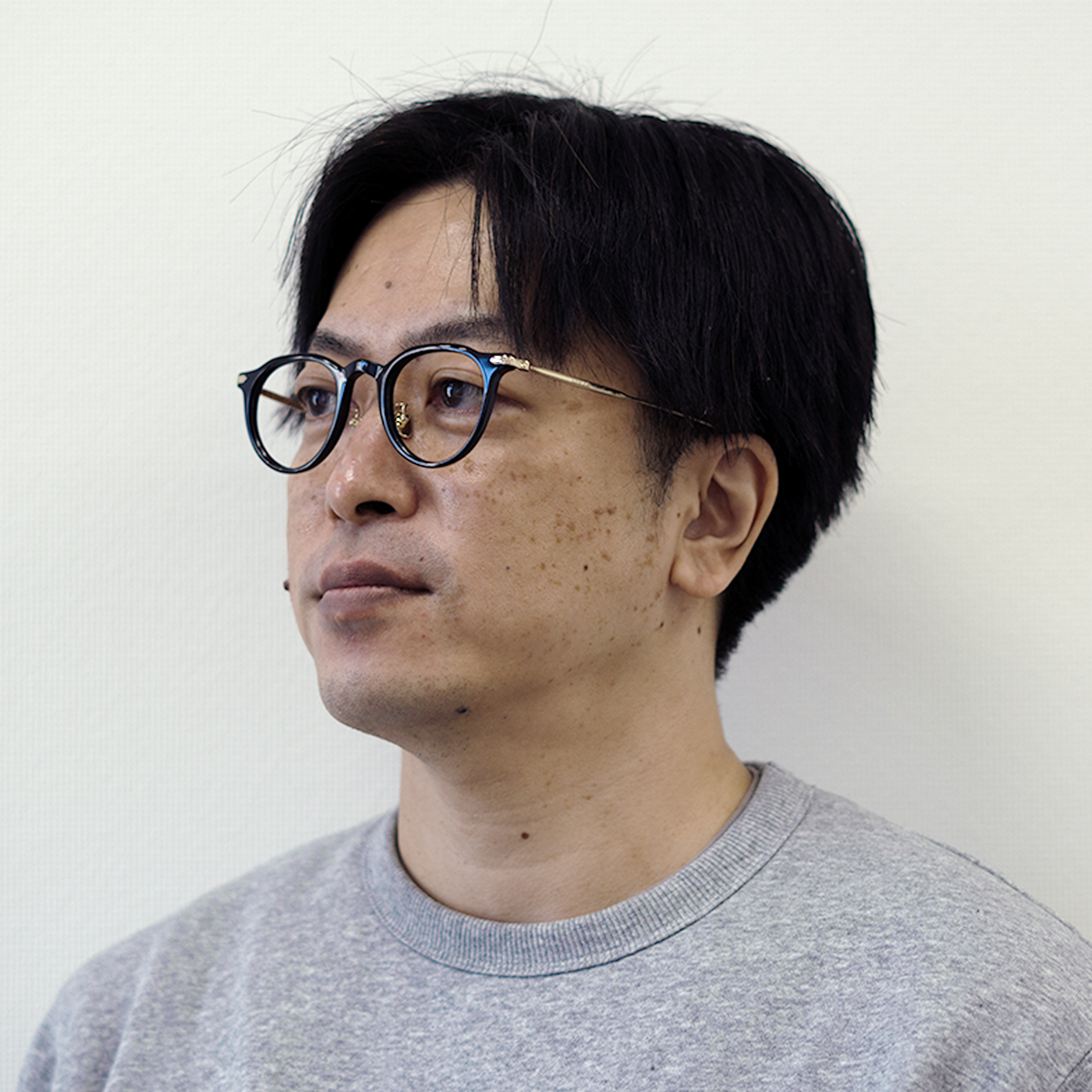 アセテートフロントにチタン製のテンプルを組み合わせた日本製のフレーム。
