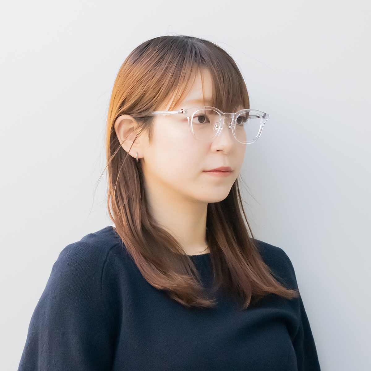 リムやレンズシェイプなど、全体が柔らかな造形のため、ジェンダーを選ばず掛けこなしやすいデザインです。