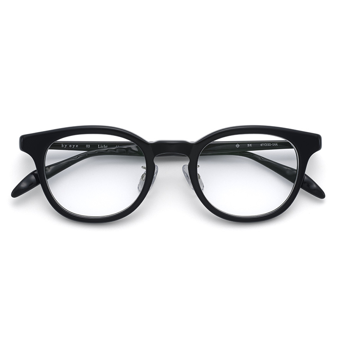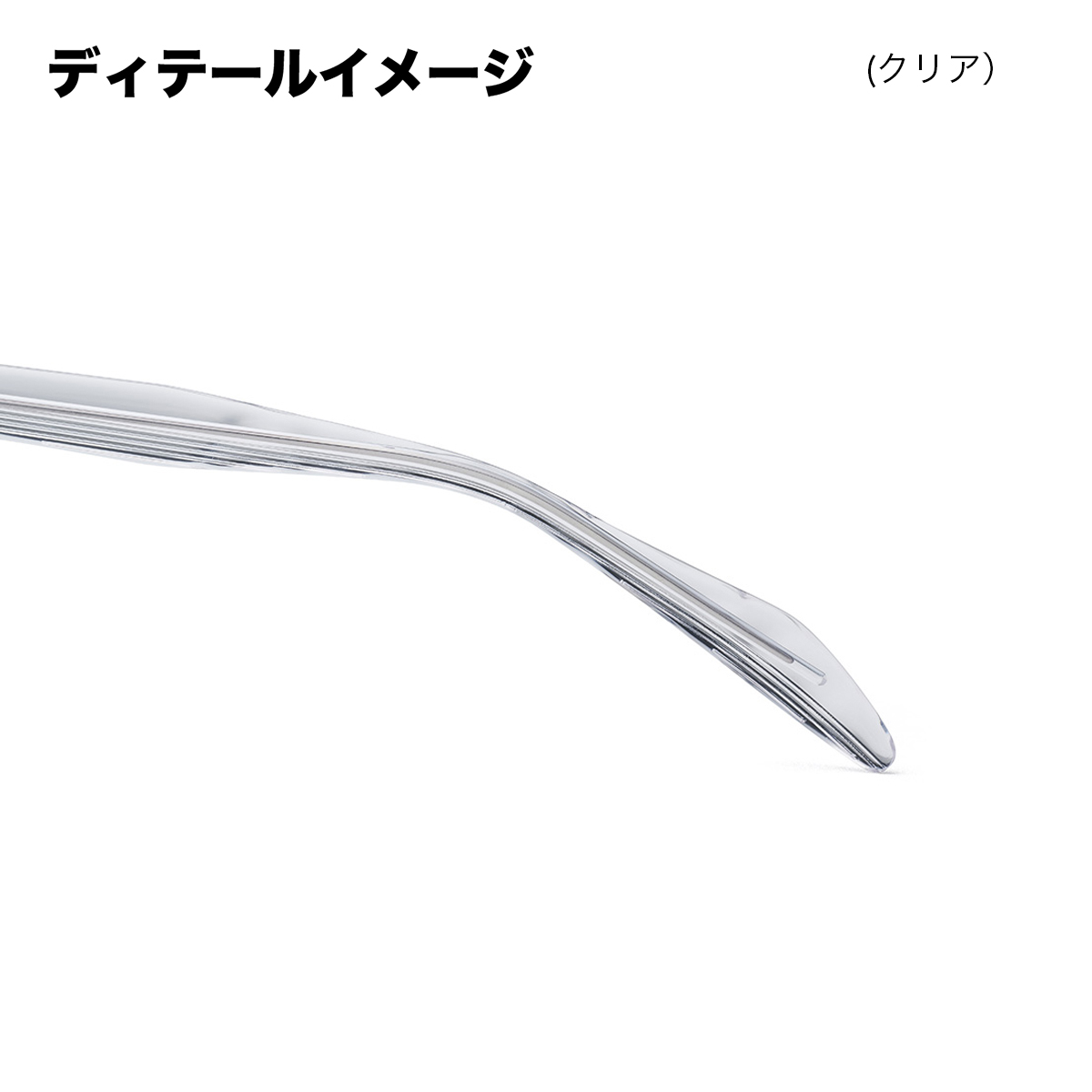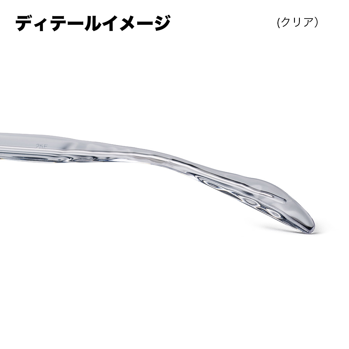 テンプル先の外側には"シャープでストレートな光線"をイメージするエングレープが、内側には柔らかい光の溜まりを表現した"水面の反射光"が巧みにデザインされています。【by eye(バイアイ)】