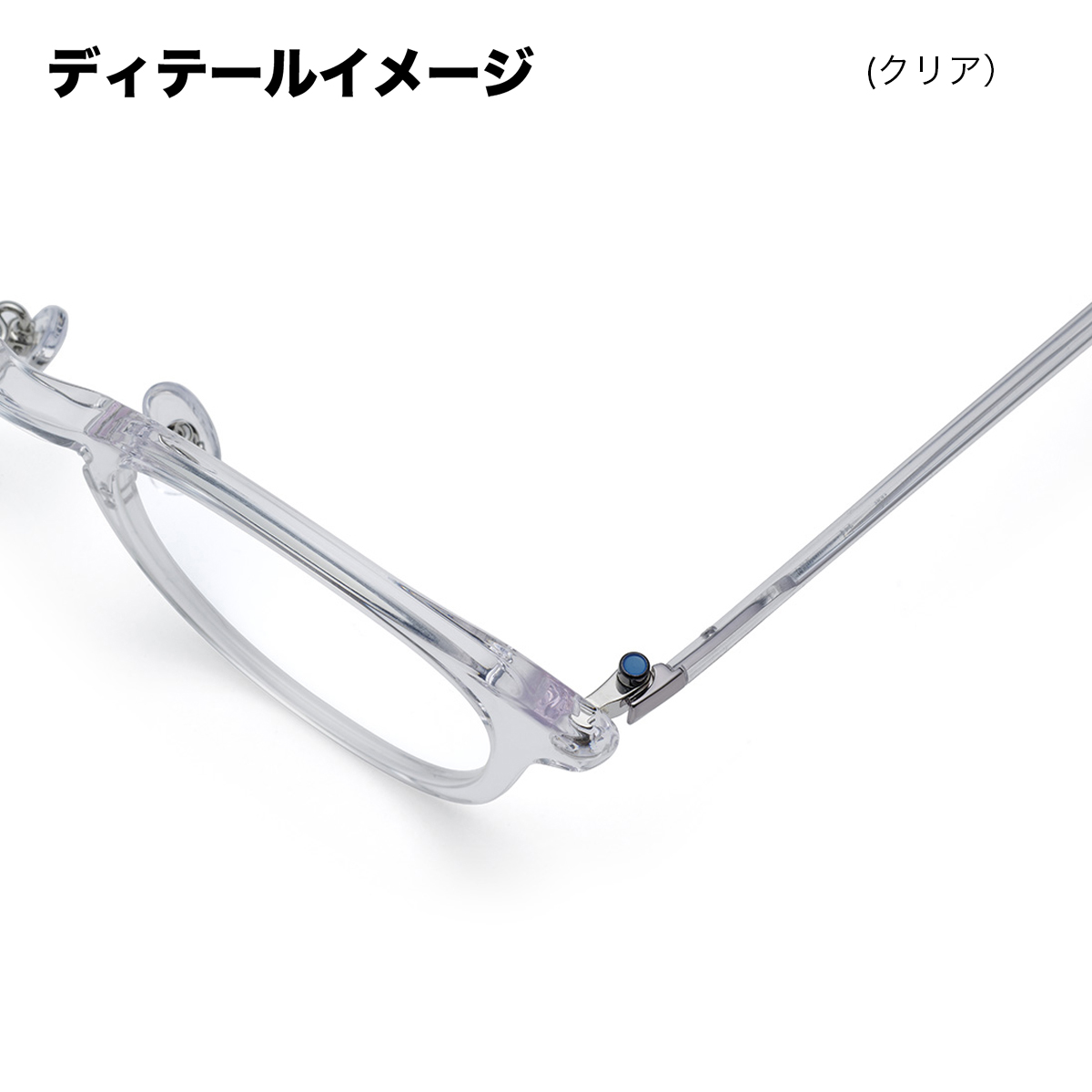 ブランドのキーカラーとなる“ブルー”のカラーリングが施された丁番のネジは、テンプルを開閉してもネジが緩みにくい機能的な側面も持ち合わせています。【デザインディテール】
