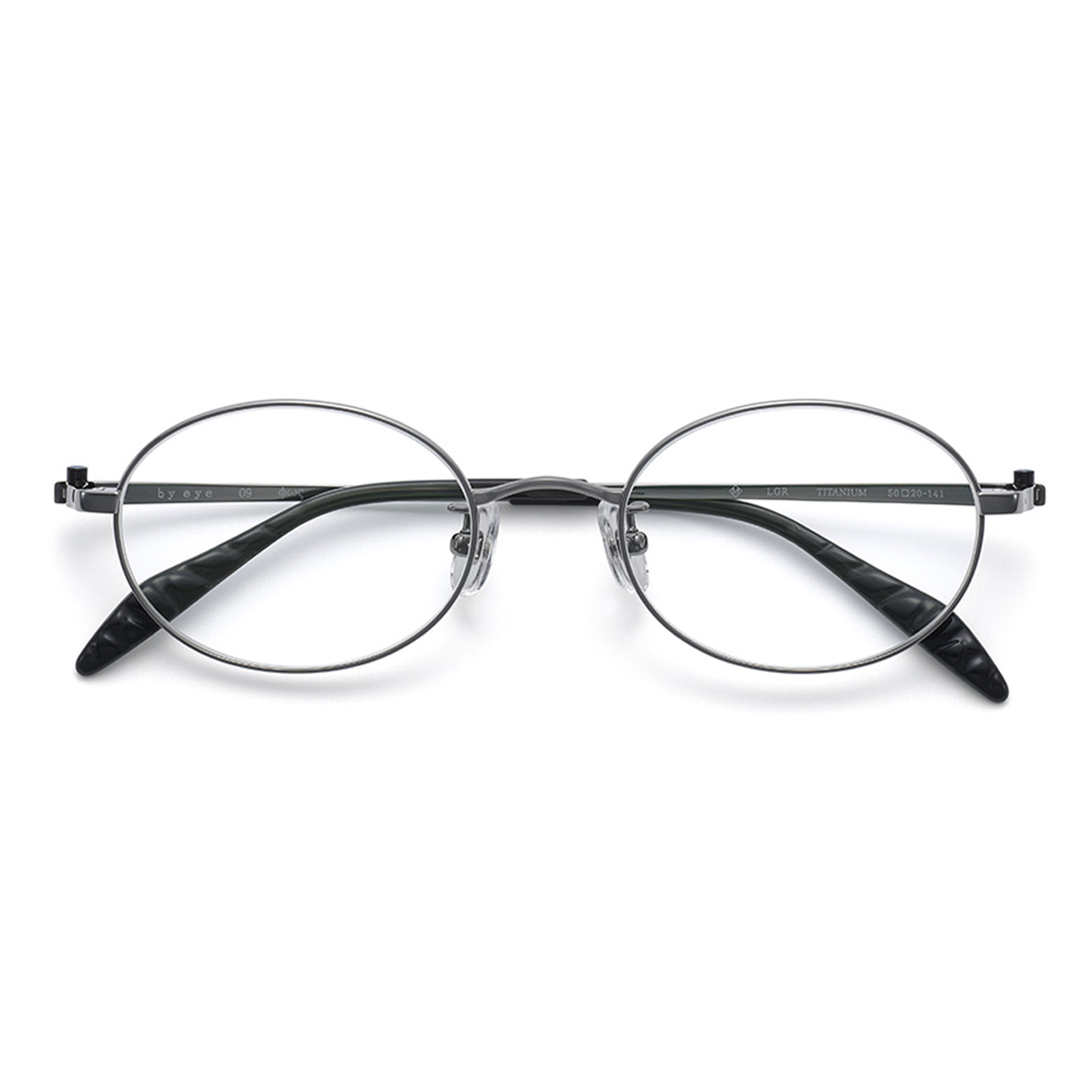 さらに、フロントとテンプルのメタル部分にはツヤとマットのグラデーションを施しており、光の反射の変化と共に、掛けた時の表情の変化を生み出します。【by eye(バイアイ)】