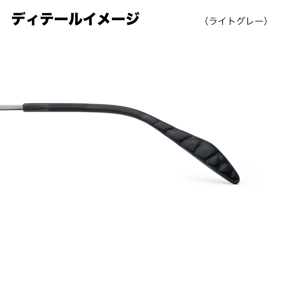 テンプル先の外側には"シャープでストレートな光線"をイメージするエングレープが、内側には柔らかい光の溜まりを表現した"水面の反射光"が巧みにデザインされています。