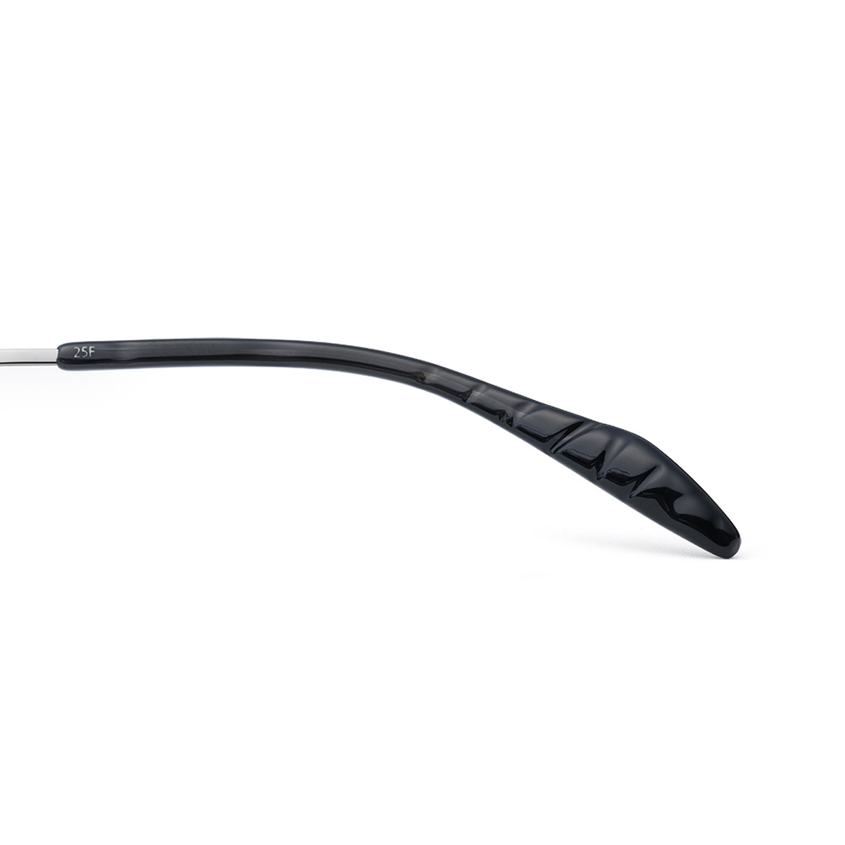 テンプル先の外側には"シャープでストレートな光線"をイメージするエングレープが、内側には柔らかい光の溜まりを表現した"水面の反射光"が巧みにデザインされています。