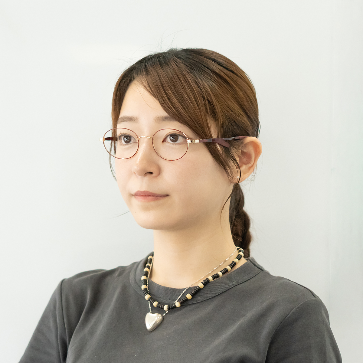 鼻まわりの肌に負担をかけないよう、完全パッドレス設計になっており、鼻の上に浮いたような状態でかけていただくメガネです。