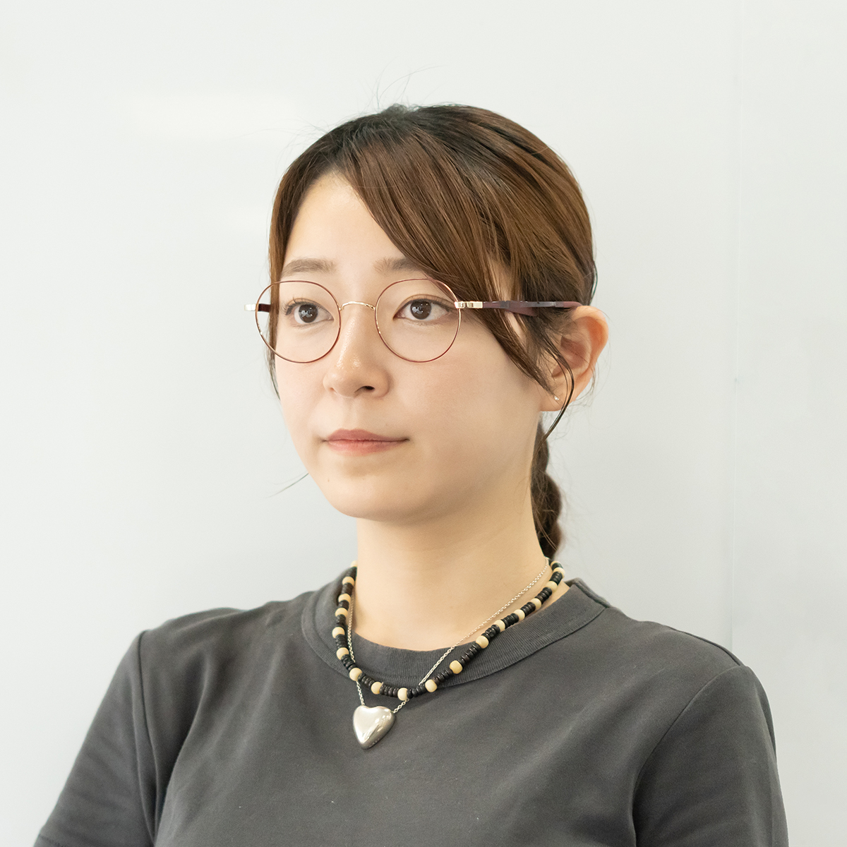 鼻まわりの肌に負担をかけないよう、完全パッドレス設計になっており、鼻の上に浮いたような状態でかけていただくメガネです。