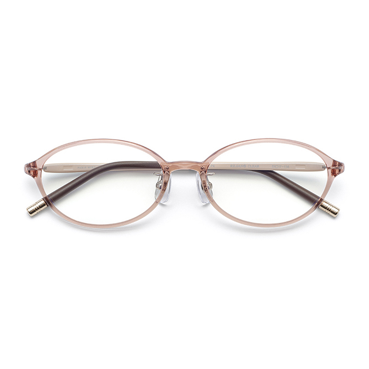 クリア感のあるカラーと、テンプル内側の差し色がポイントになっています。