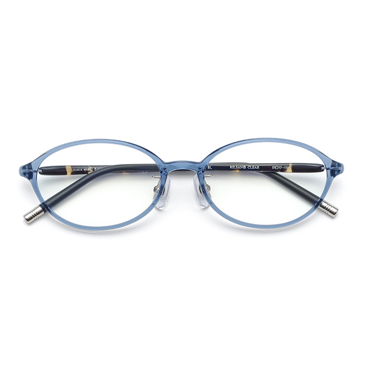 クリア感のあるカラーと、テンプル内側の差し色がポイントになっています。