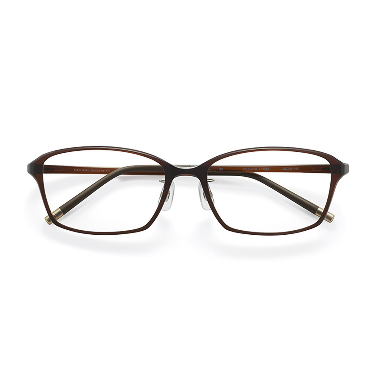 バランスフィットではテンプルエンドチップに片方で約1グラムのメタルパーツを装着させ、うしろが適度に重くなるよう「バランサーモダン」を開発しました。