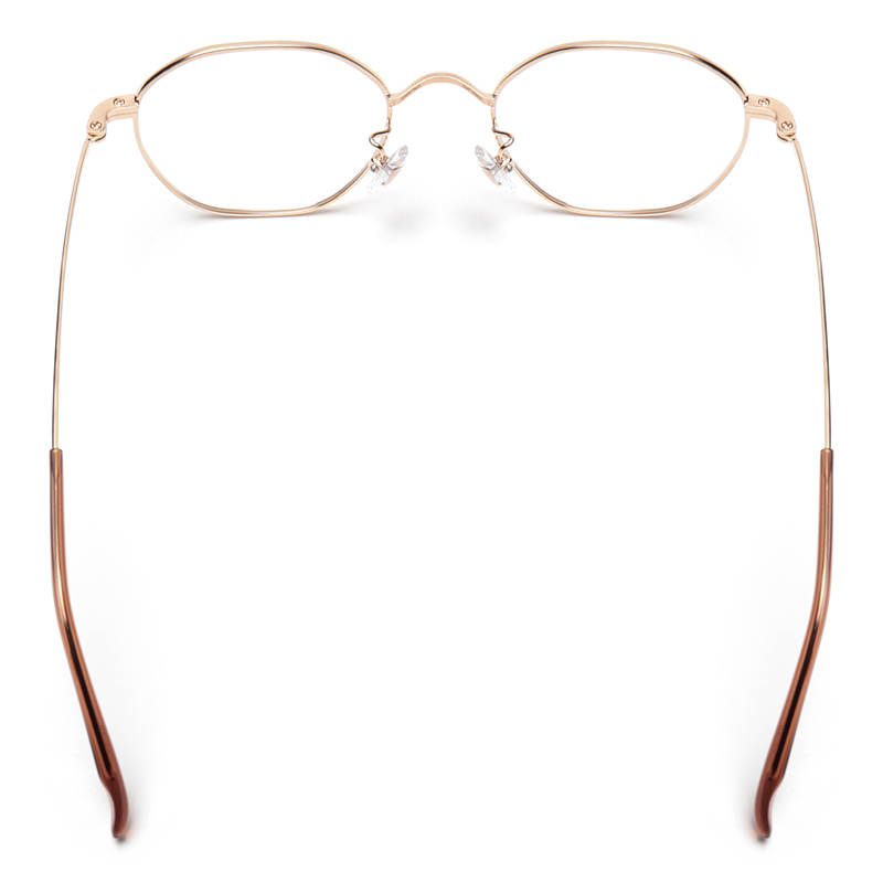 「036モデル」は、フロントシェイプが八角形(オクタゴン型)のメタルフレーム。多角形の角度に丸みを持たせることによって、マニアックな印象にならないようデザインされています。
