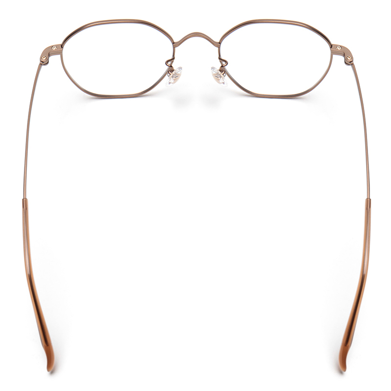 「036モデル」は、フロントシェイプが八角形(オクタゴン型)のメタルフレーム。多角形の角度に丸みを持たせることによって、マニアックな印象にならないようデザインされています。