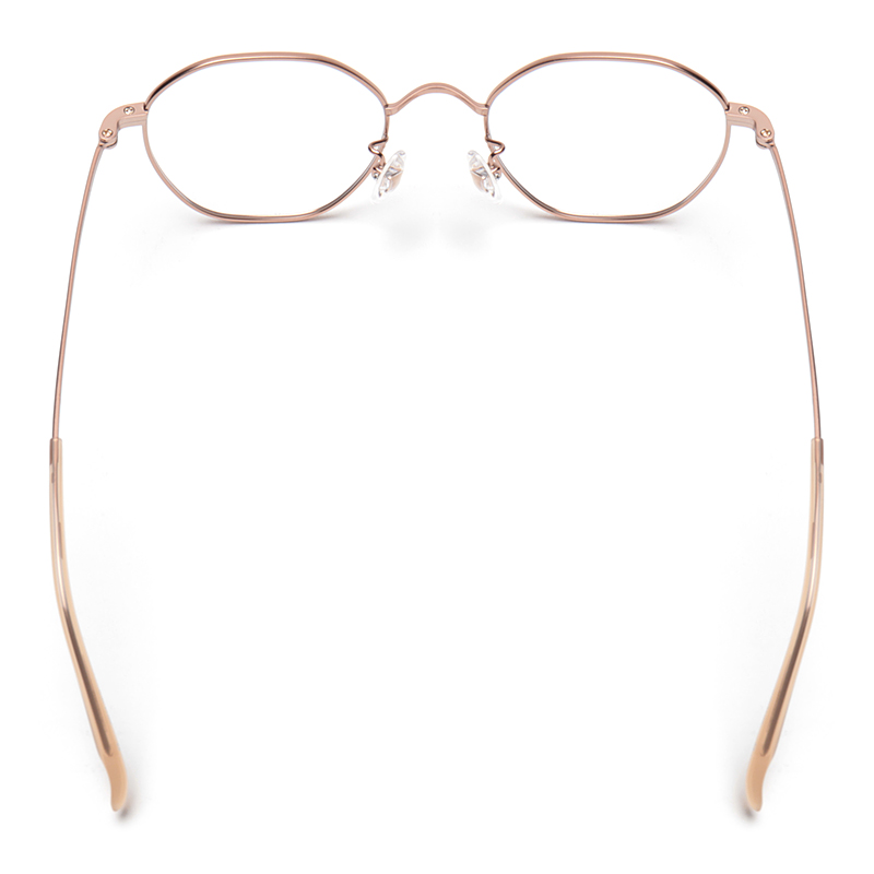 「036モデル」は、フロントシェイプが八角形(オクタゴン型)のメタルフレーム。多角形の角度に丸みを持たせることによって、マニアックな印象にならないようデザインされています。