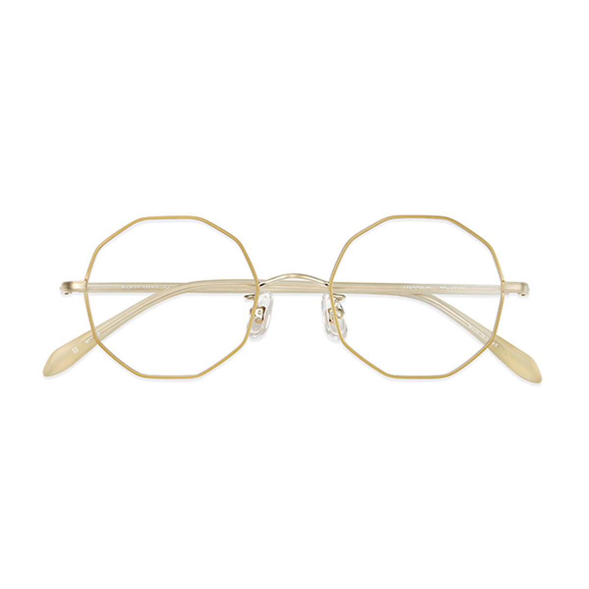 珍しい形状ながらも、かけると顔馴染みが良くスタイリッシュに映るデザインです。
