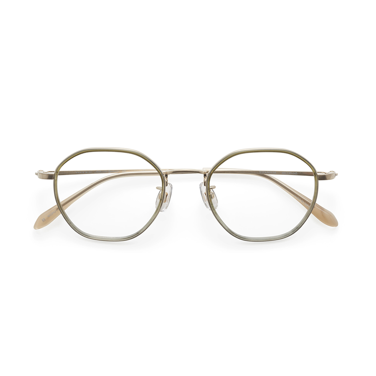 男女共に似合いやすいオクタゴン(8角形)のレンズシェイプは、レンズラインの角を柔らかく落としながら掛けこなしやすいデザインにまとめています。
