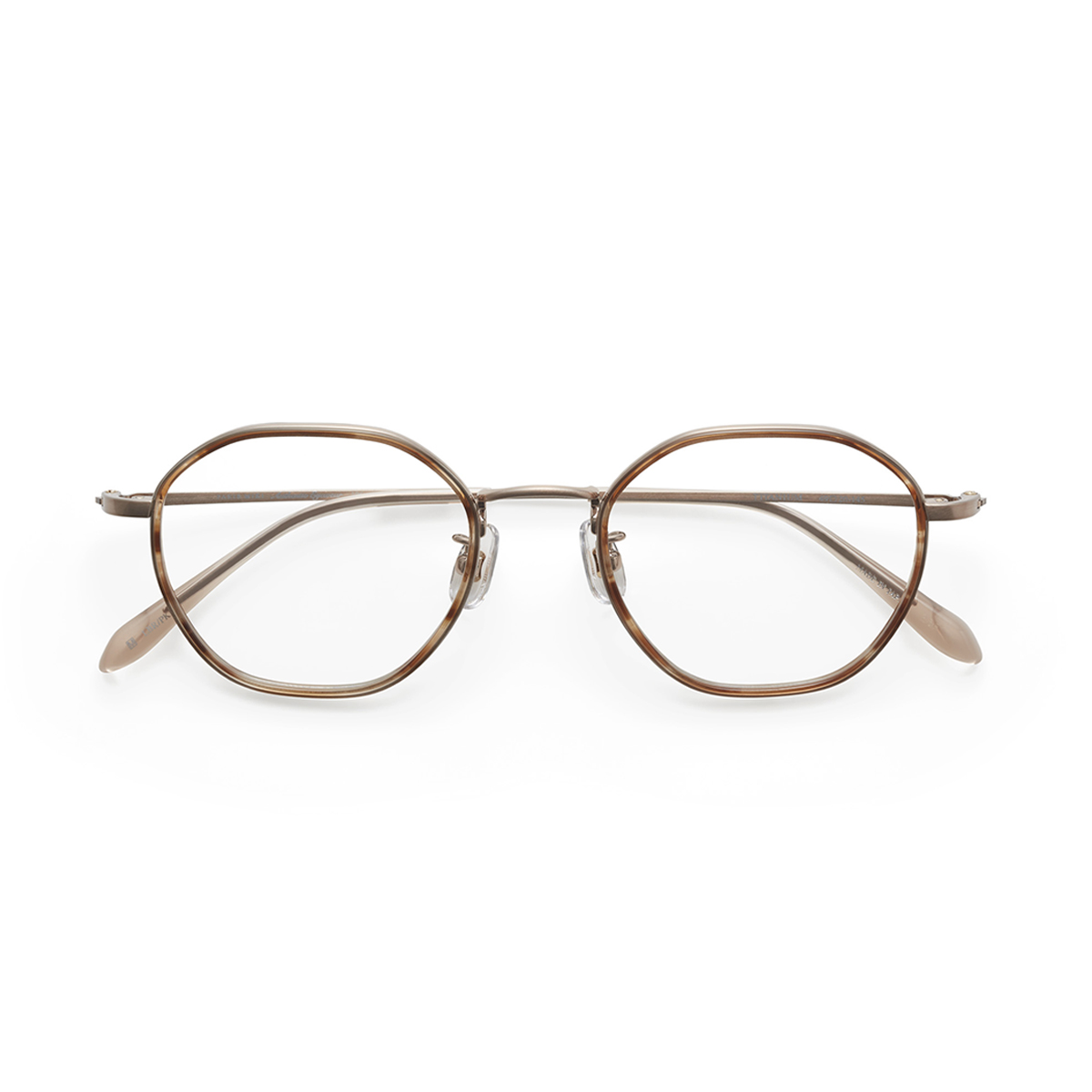 男女共に似合いやすいオクタゴン(8角形)のレンズシェイプは、レンズラインの角を柔らかく落としながら掛けこなしやすいデザインにまとめています。