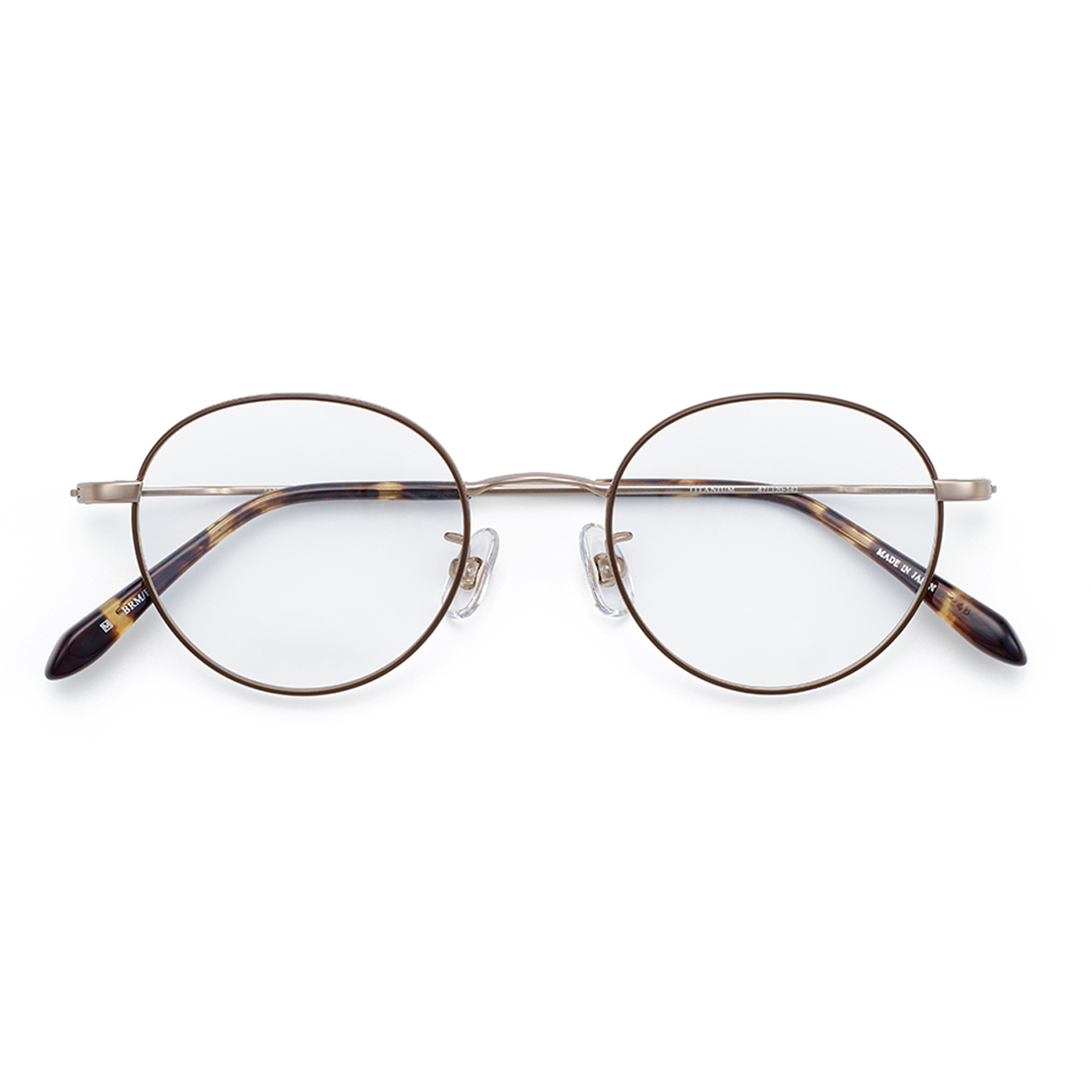 モデルの特徴でもある「クランク状テンプル」は、βチタンを柔らかく且つコシが出る寸法で微調整を行い特別なクランク形状にすることで、かけた時にテンプルの戻り具合を向上させ、柔らかくも程よいホールド感を実現しました。