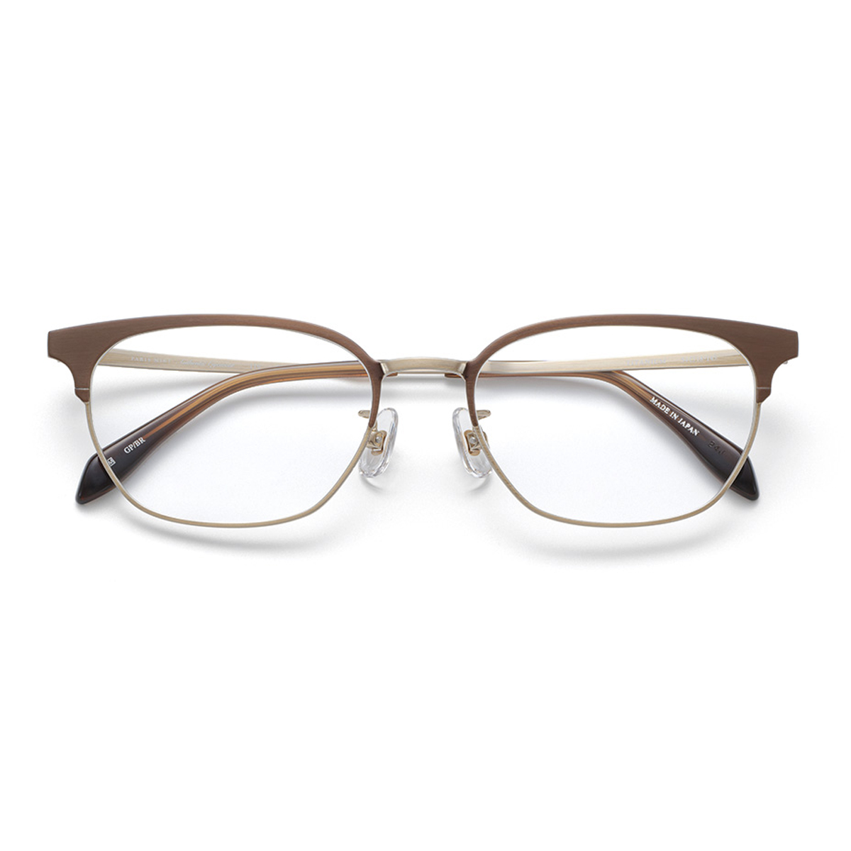 メタルフレームながら、眉部にボリュームを持たせてブローフレームのような雰囲気に。