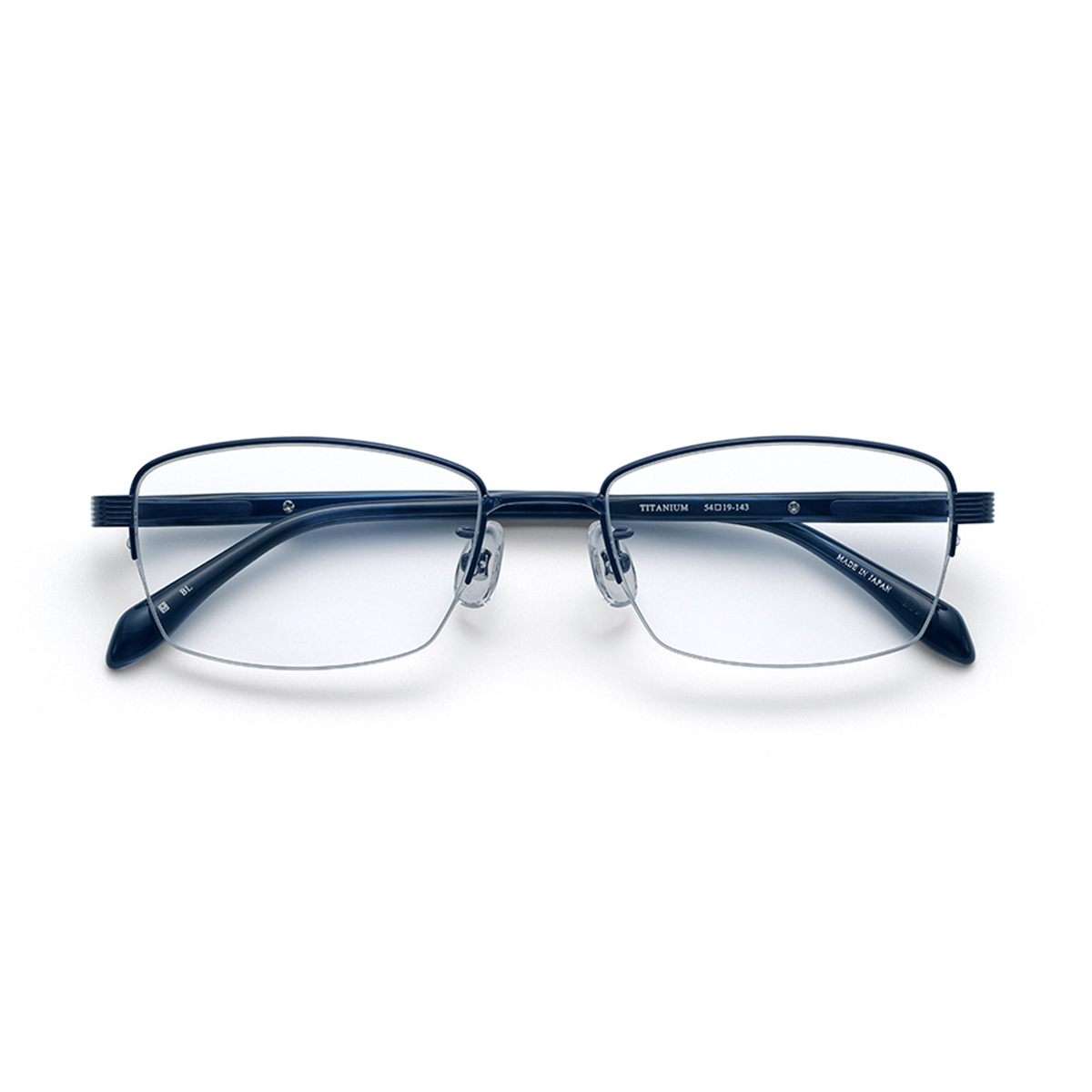 下リムの無いナイロールは眉ラインを強調し、引き締まった表情を演出。
