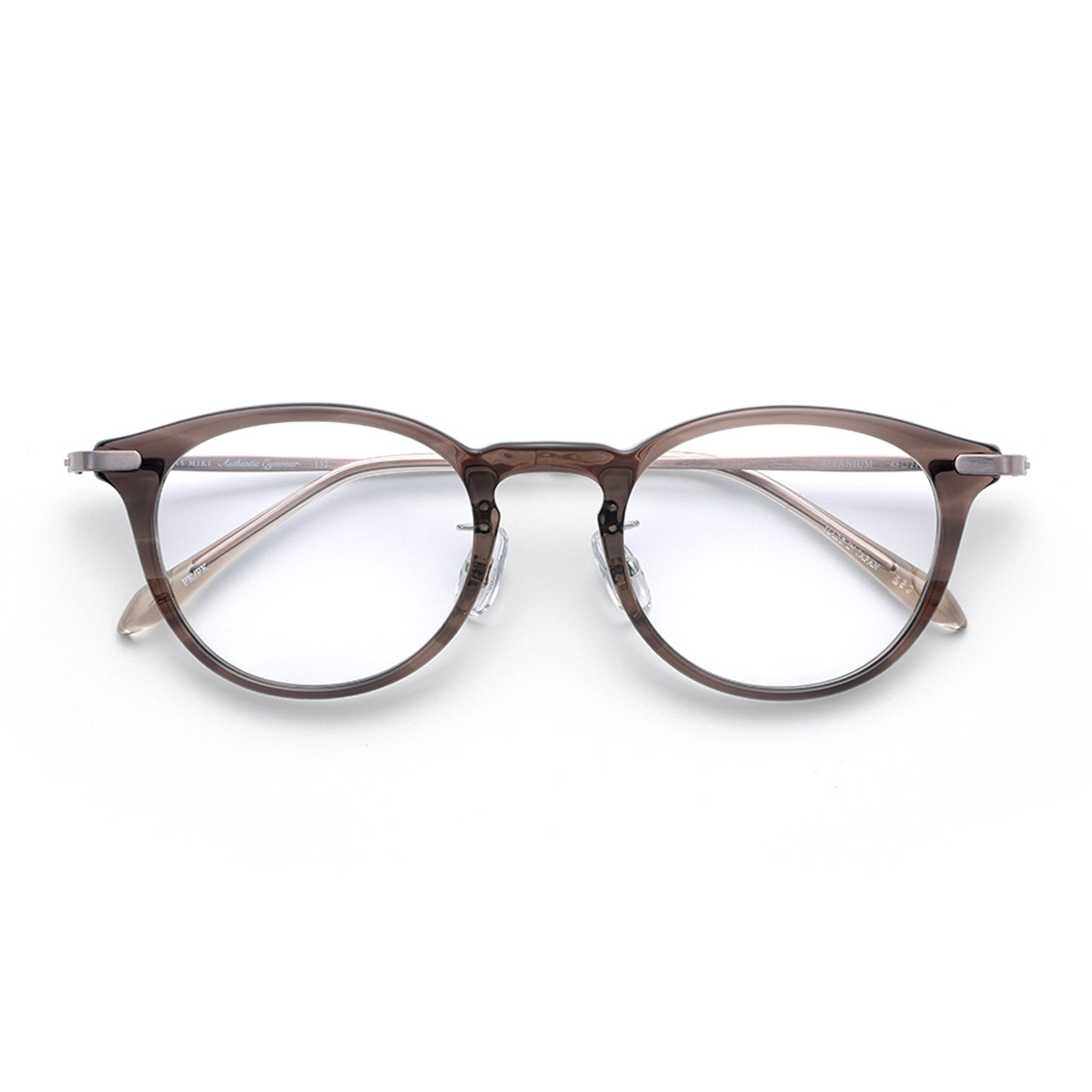 チタン製の各メタルパーツは腐食しにくく、軽量かつ高強度な仕上がりになっています。【PARIS MIKI Authentic Eyewear】