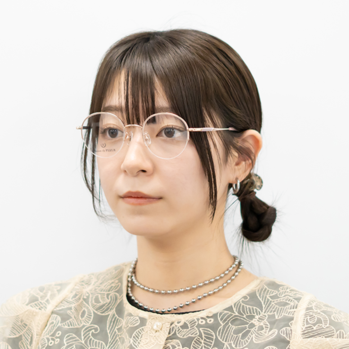 リムの下半分がないため、目元の印象を変えずにかけていただけます。