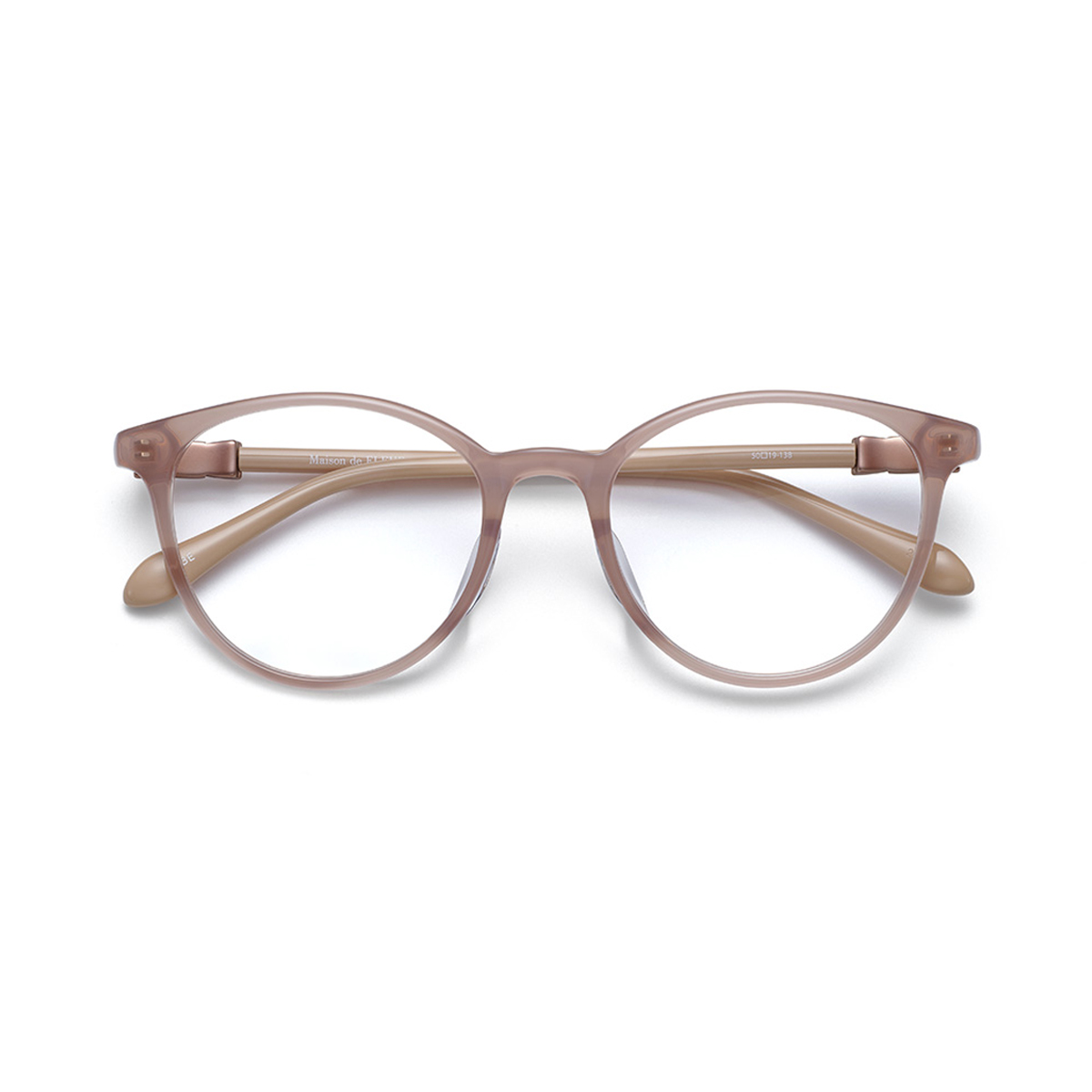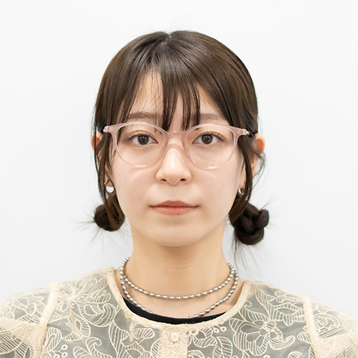 少しだけ目じりが上がったレンズシェイプは、丸みのある形でも大人っぽい印象です。