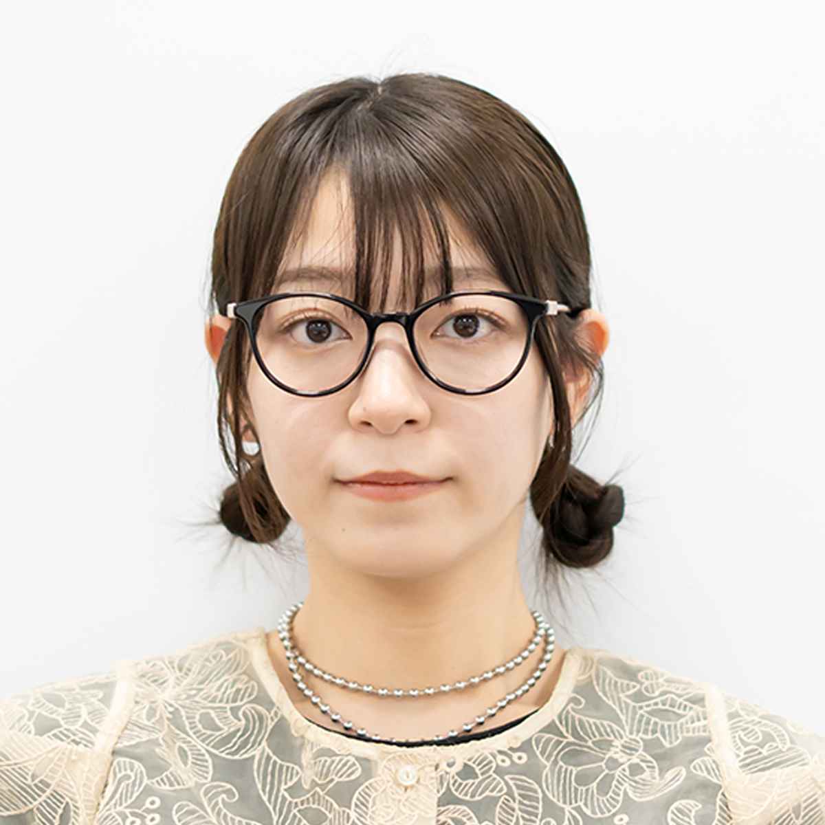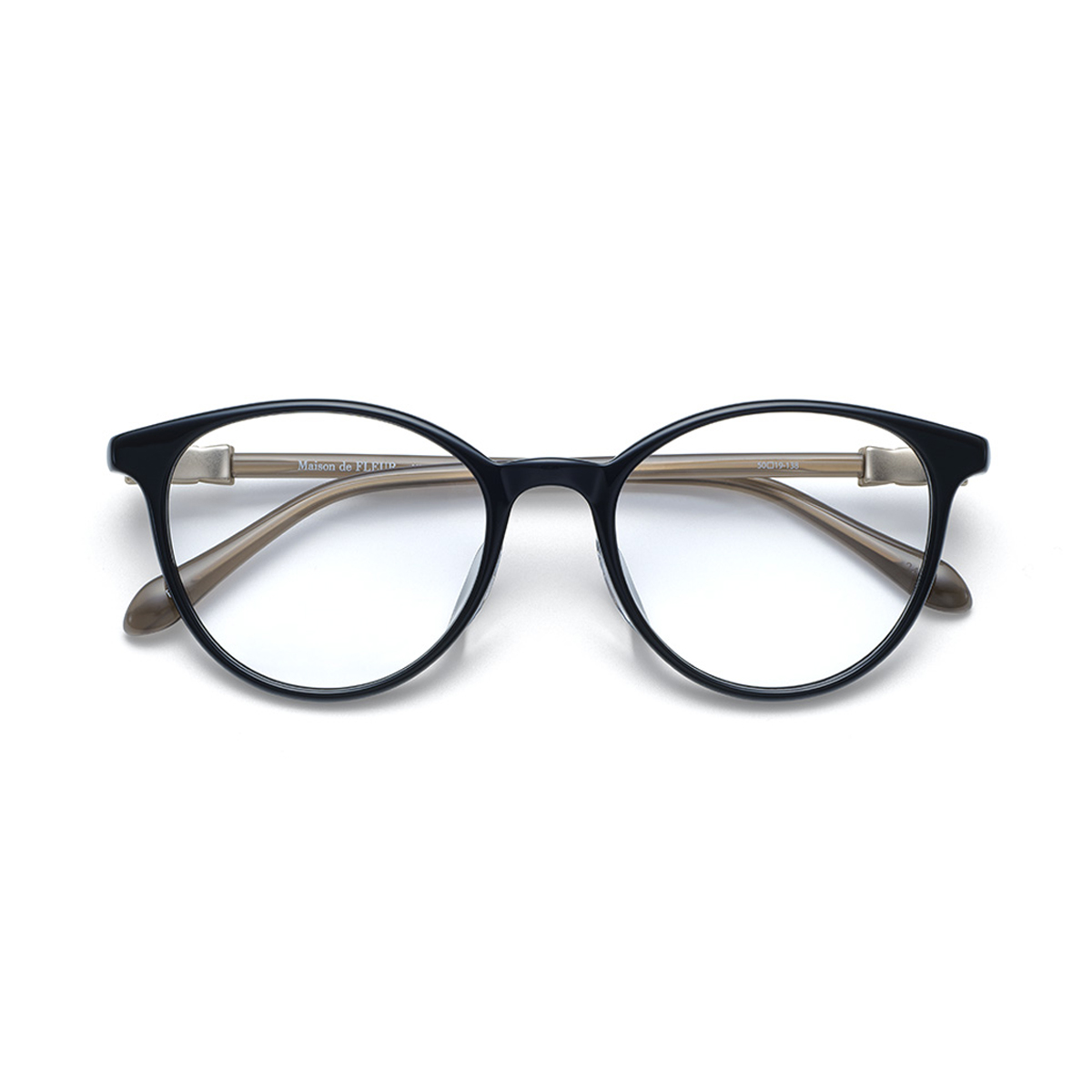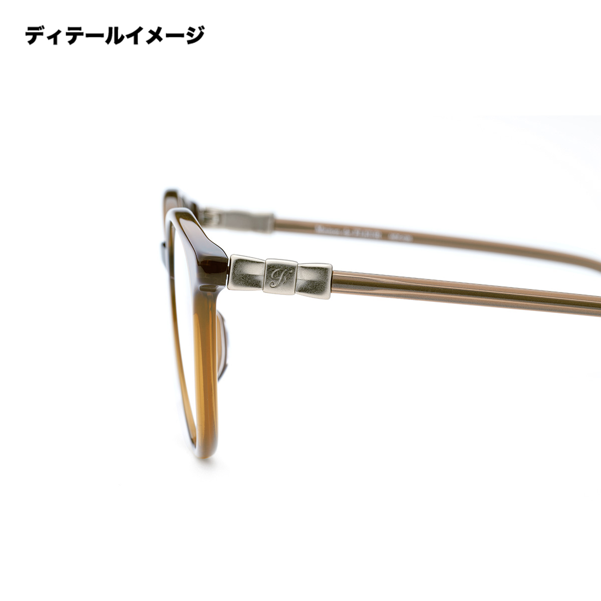 少しだけ目じりが上がったレンズシェイプは、丸みのある形でも大人っぽい印象です。