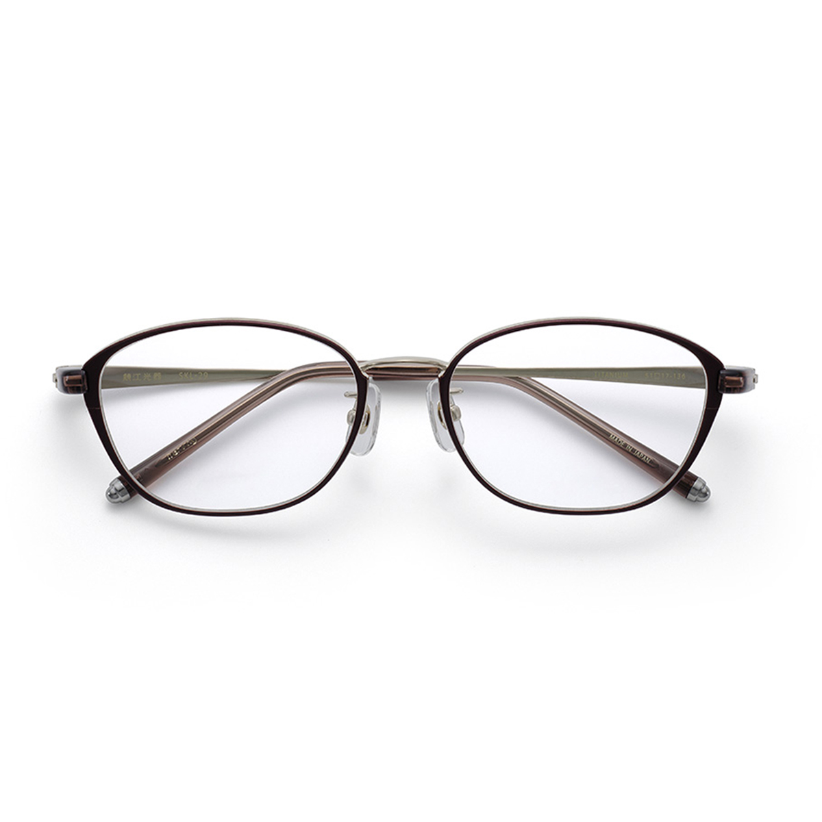 ブランドアイコンが刻まれたパッド、重心をとるためにモバチ先につけられたバランサーは、どちらも錆びにくいチタン製。【鯖江光器】