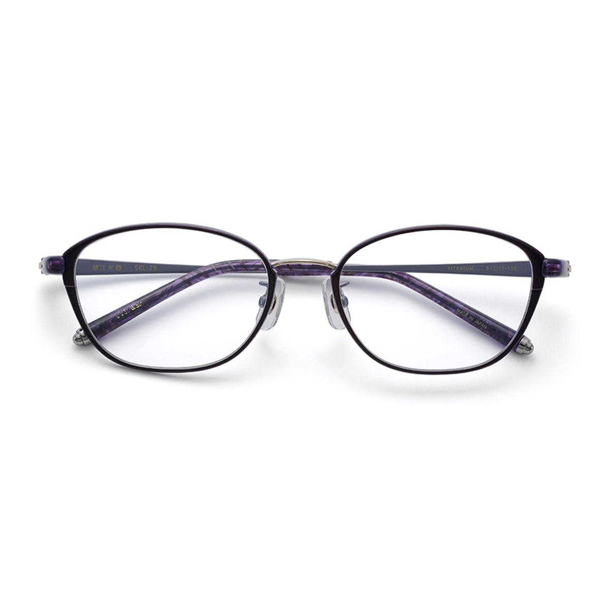 ブランドアイコンが刻まれたパッド、重心をとるためにモバチ先につけられたバランサーは、どちらも錆びにくいチタン製。【鯖江光器】