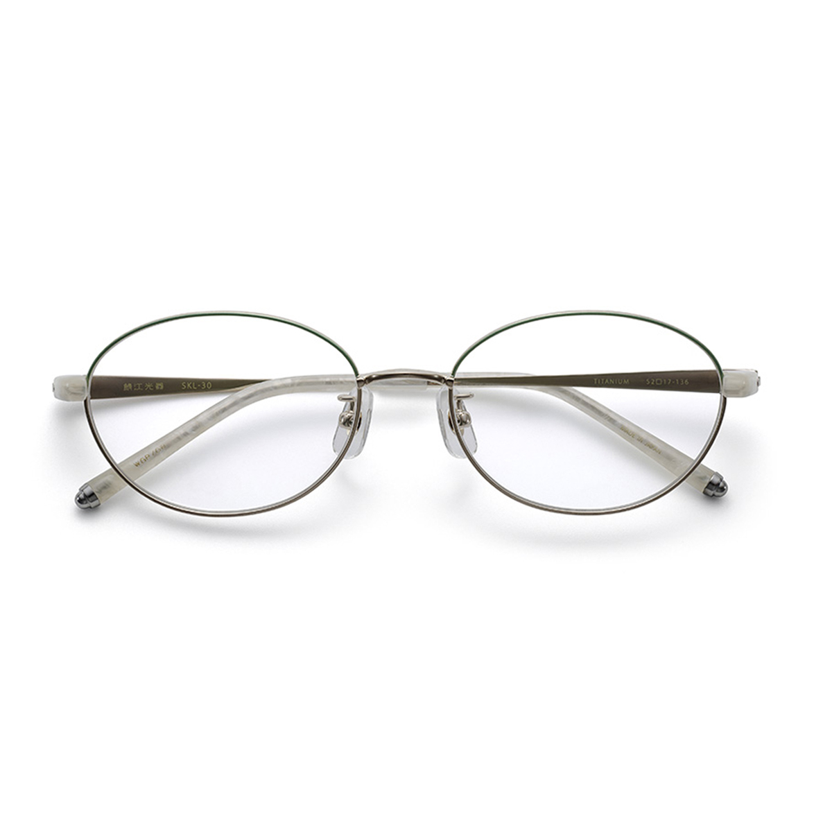 ブランドアイコンが刻まれたパッド、重心をとるためにモバチ先につけられたバランサーは、どちらも錆びにくいチタン製。【鯖江光器】