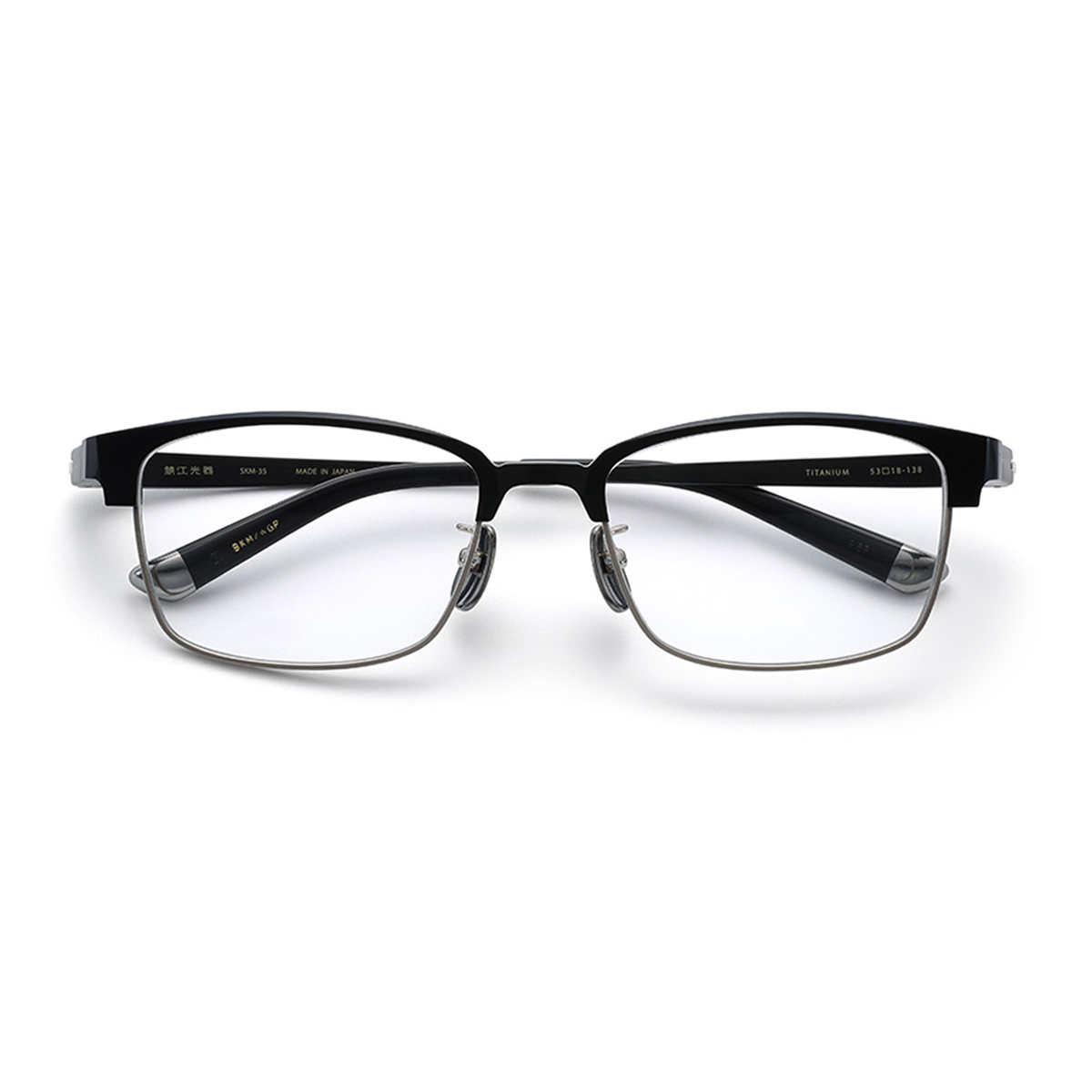 ブランドアイコンが刻まれたパッド、重心をとるためにモバチ先につけられたバランサーは、どちらも錆びにくいチタン製です。【鯖江光器】