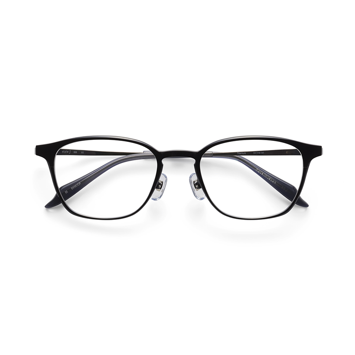 チタン一体成型のフロントは、クラシック過ぎないスクエアとウェリントンの中間的レンズシェイプ。