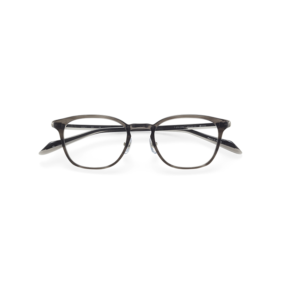 レンズシェイプは天地サイズが深すぎないスクエアウェリントンで、スッキリ細身のリムと相まって掛けこなし やすいスタイルに。