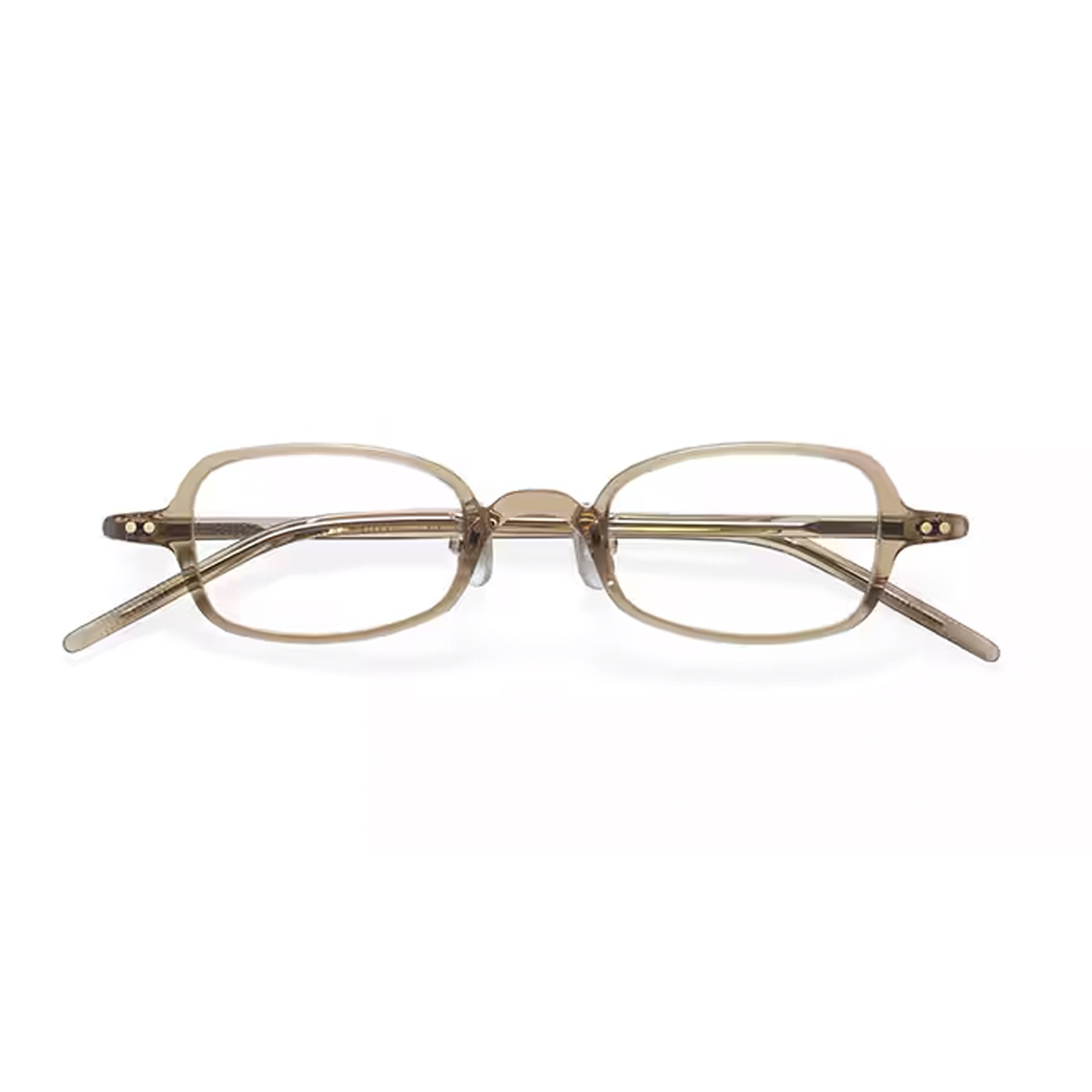 前枠は小ぶりに、かつ高密度アセテートを使うことで、薄くスッキリとした見た目に。