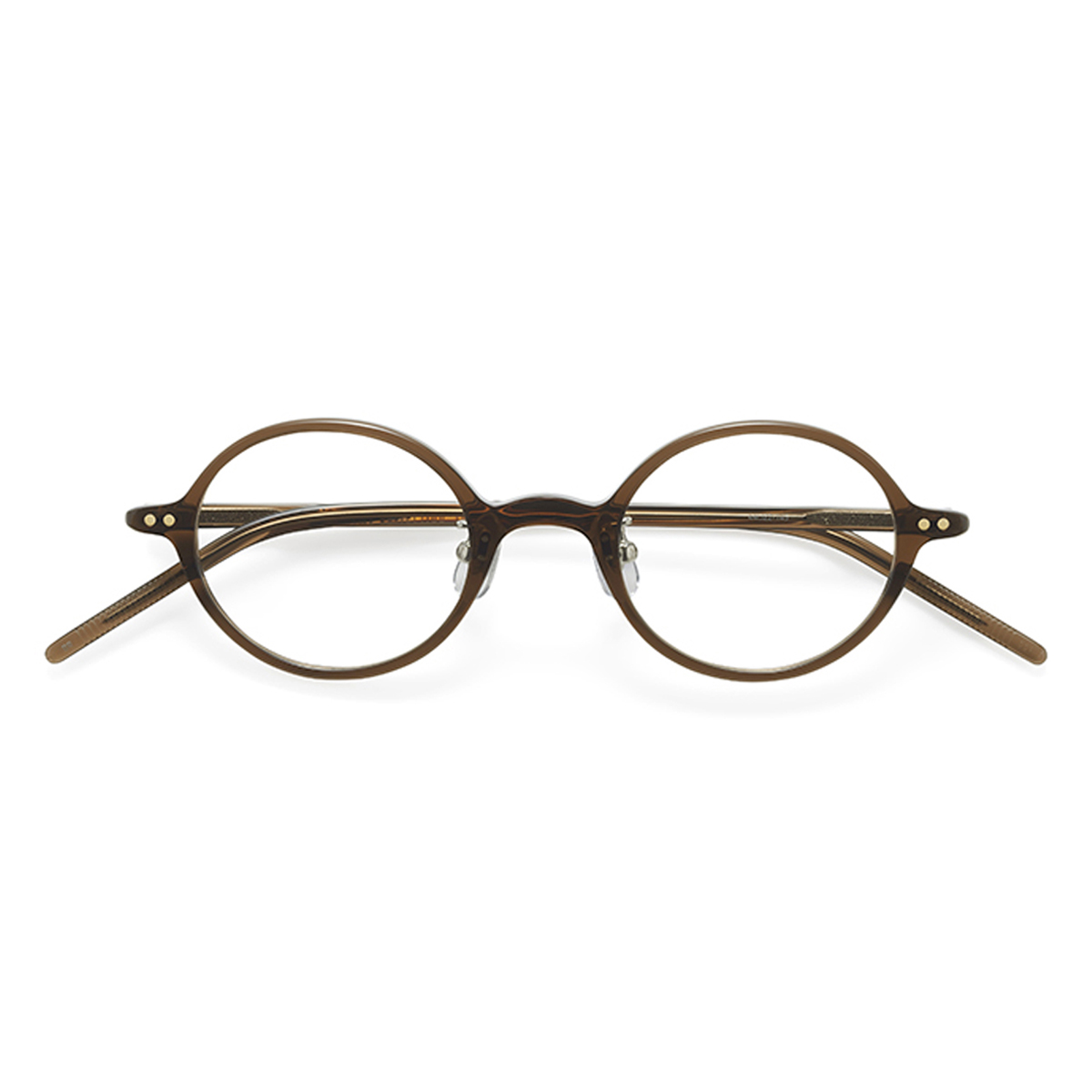 前枠は小ぶりに、かつ高密度アセテートを使うことで、薄くスッキリとした見た目に。