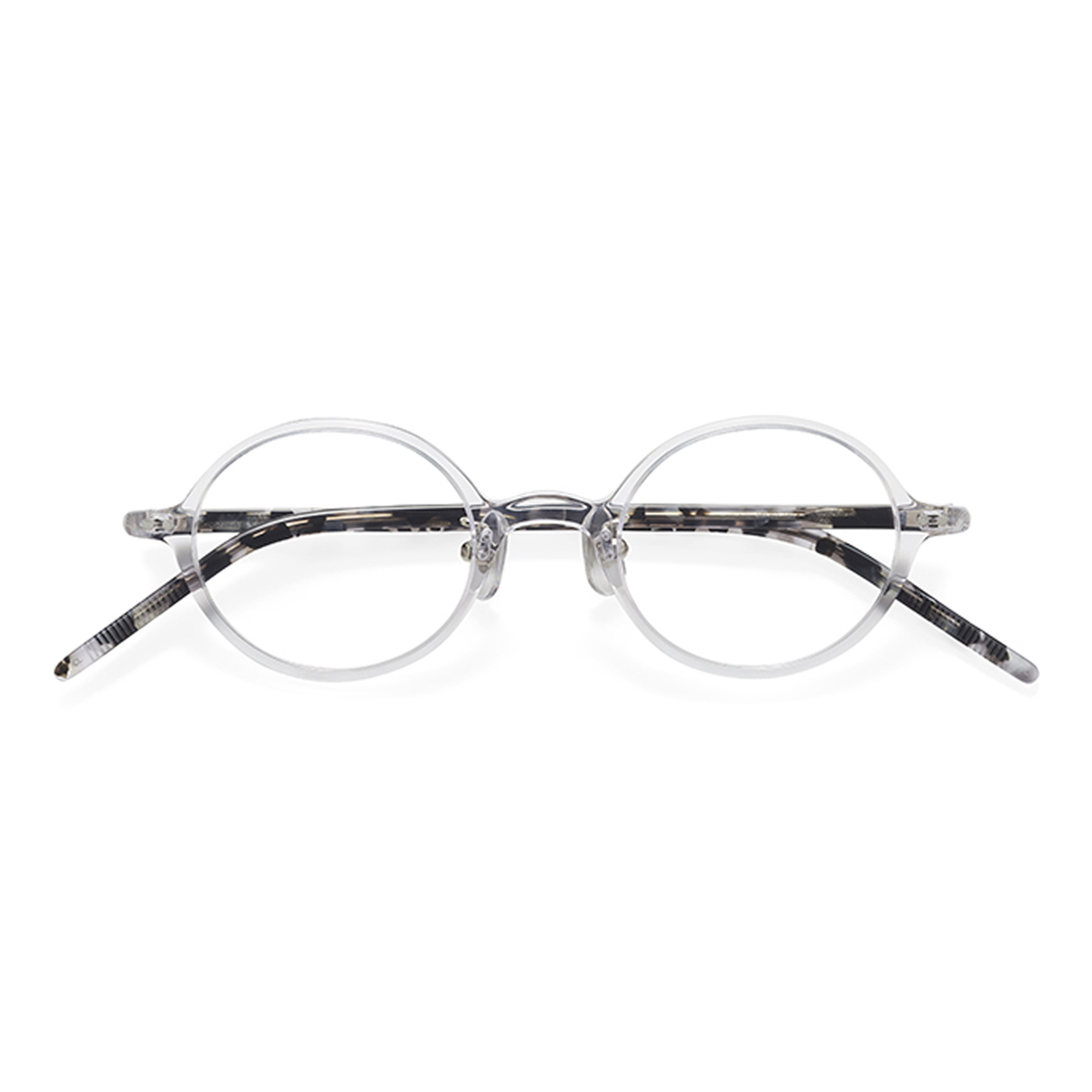 前枠は小ぶりに、かつ高密度アセテートを使うことで、薄くスッキリとした見た目に。