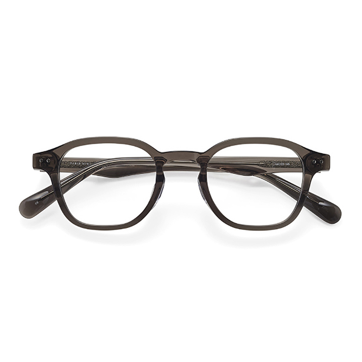 丸すぎないウェリントンで、眉尻が下がるようなシェイプ。