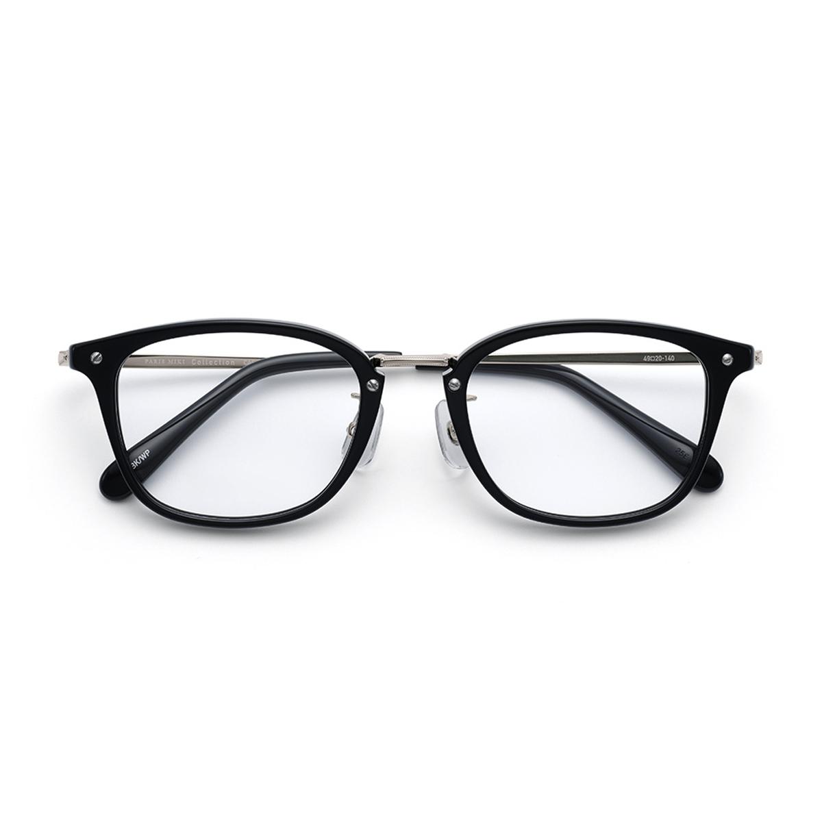プラスチックの存在感とメタルの繊細さを組み合わせたコンビネーションフレーム。
