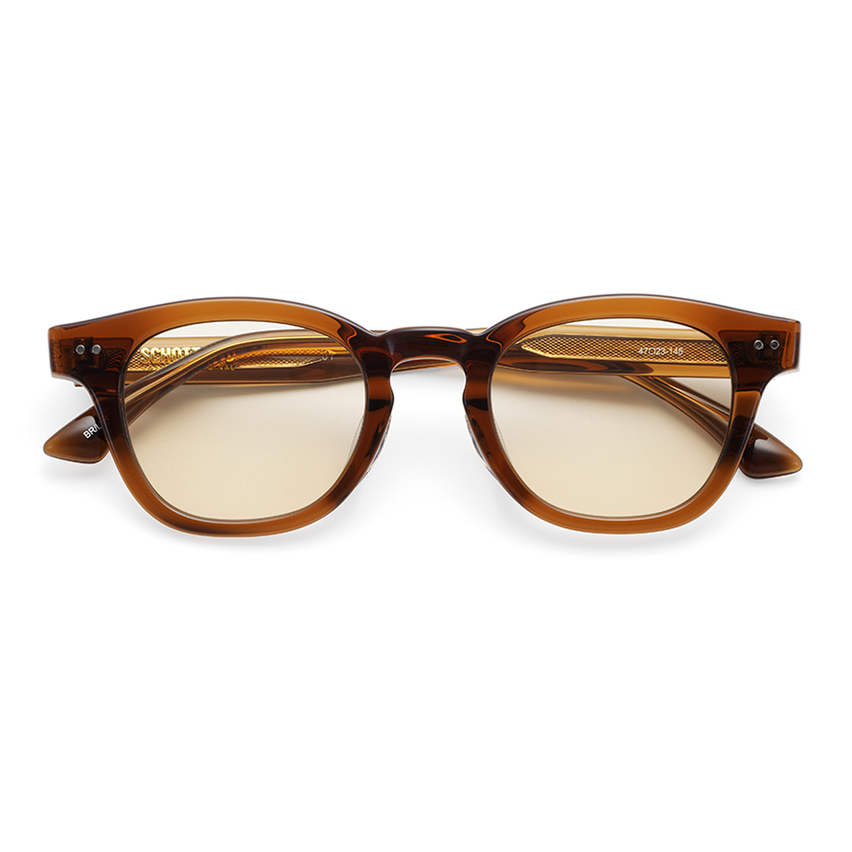 Schottのブランドロゴがテンプル内側にゴールドで入る。