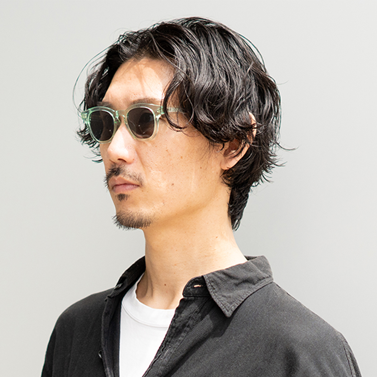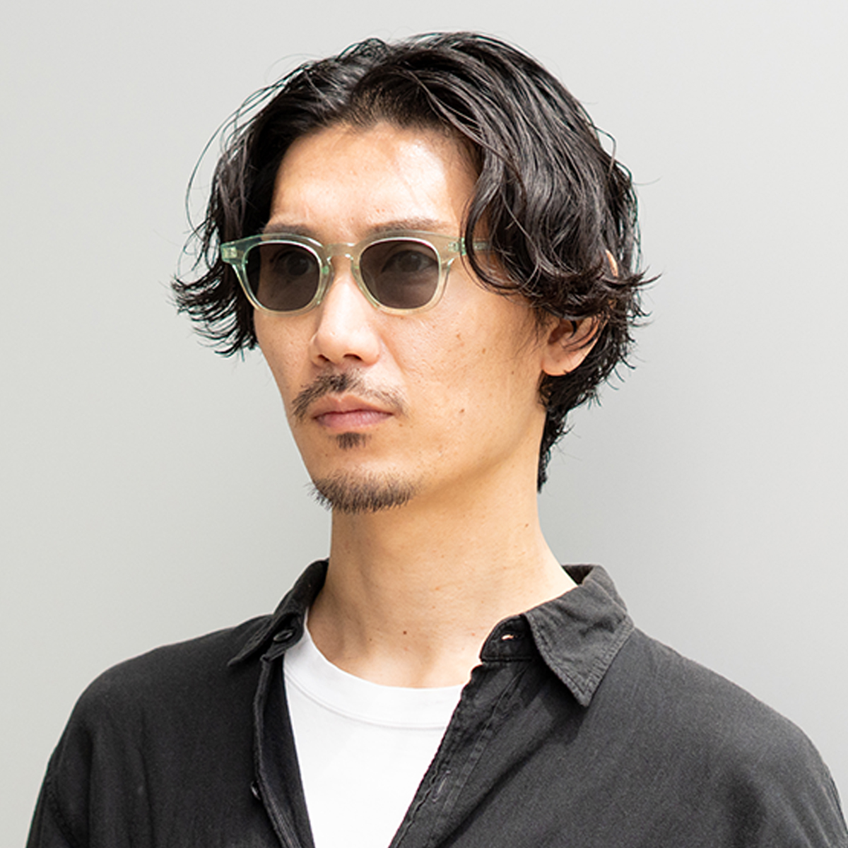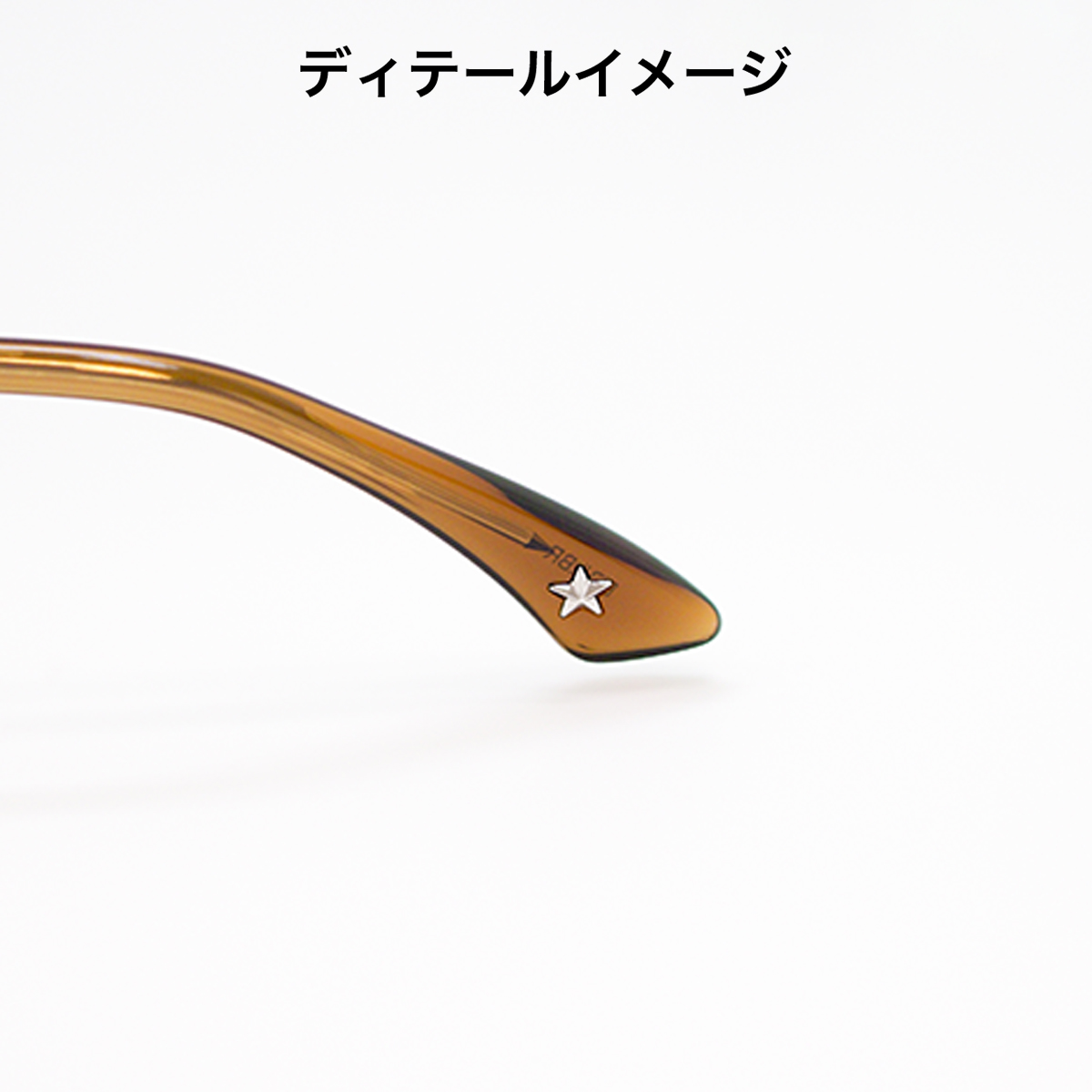 ライン入りの飾りテンプル芯、フロント、テンプルに飾られた丸リベットが当時の雰囲気を醸し出す。