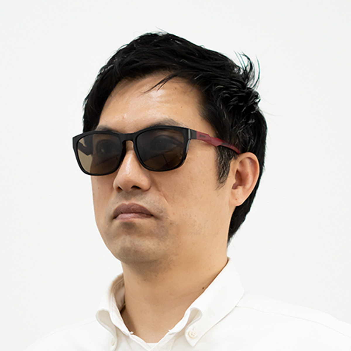 ベーシックなスクエアシェイプで、掛けやすいスタイルに。