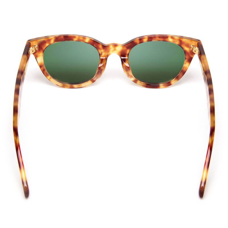 90年代を彷彿させる厚みを持たせた重厚なフレームに対して、エッジーなカッティングに加え