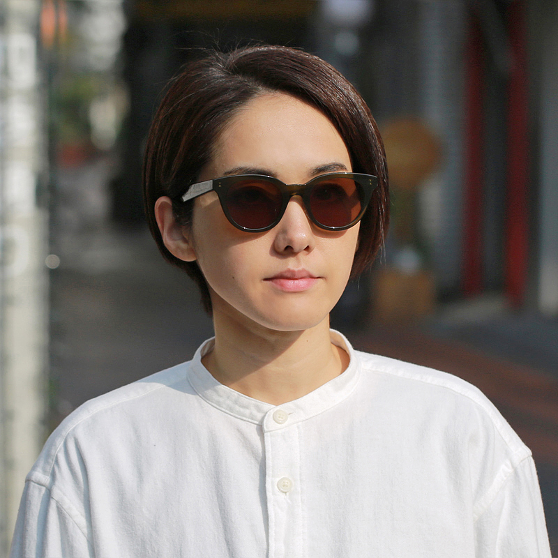 彫刻を施したオリジナルの芯棒がアクセントとなるA.D.S.R.らしいボストンタイプのフルリムモデル。