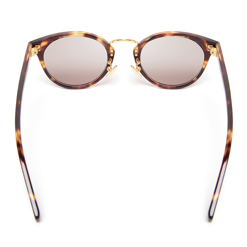 クラシックな形状だが、リムにアセテートを使用し、レンズは現代らしいカラーレンズを加えることで、
