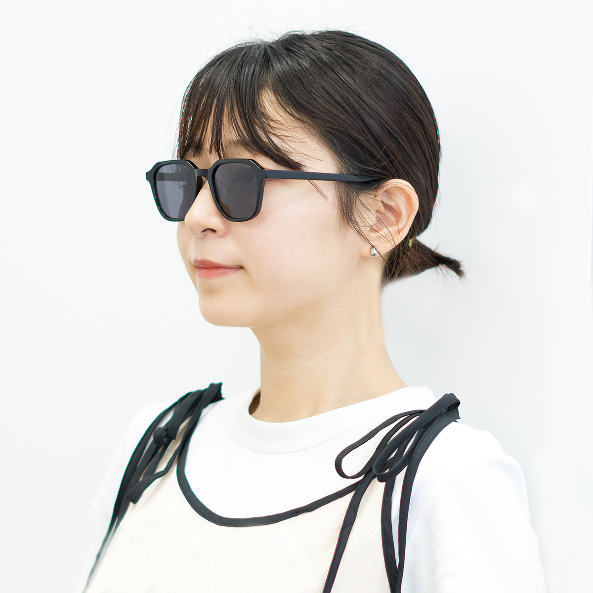細身のリムとフレームに対して柔らかい玉型のレンズの組み合わせが、日常の装いを更に洗練された雰囲気へアップデートしてくれる逸品。