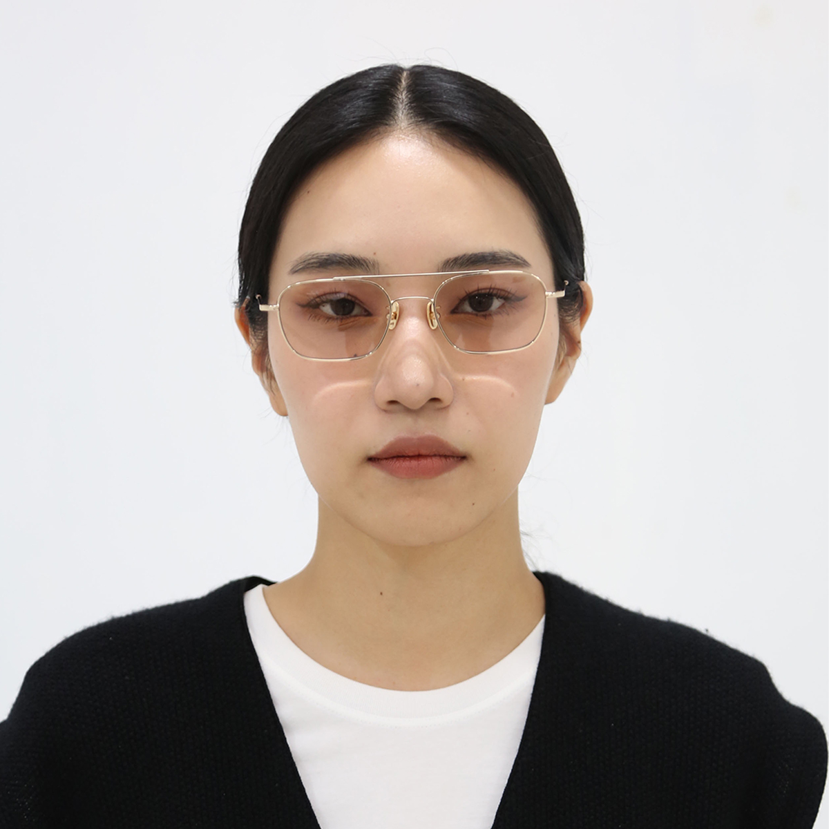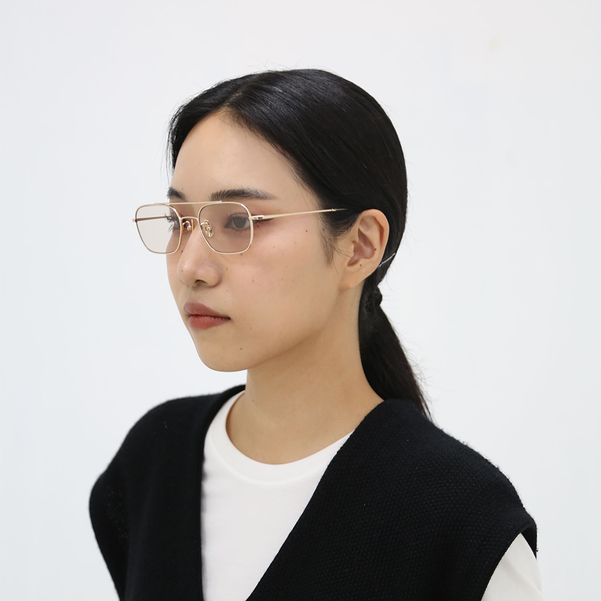 クラシカルなツーブリッジ仕様のスクエアシルエットを大胆にも現代的なサイズ感で表現した新鮮なメタルフレーム。