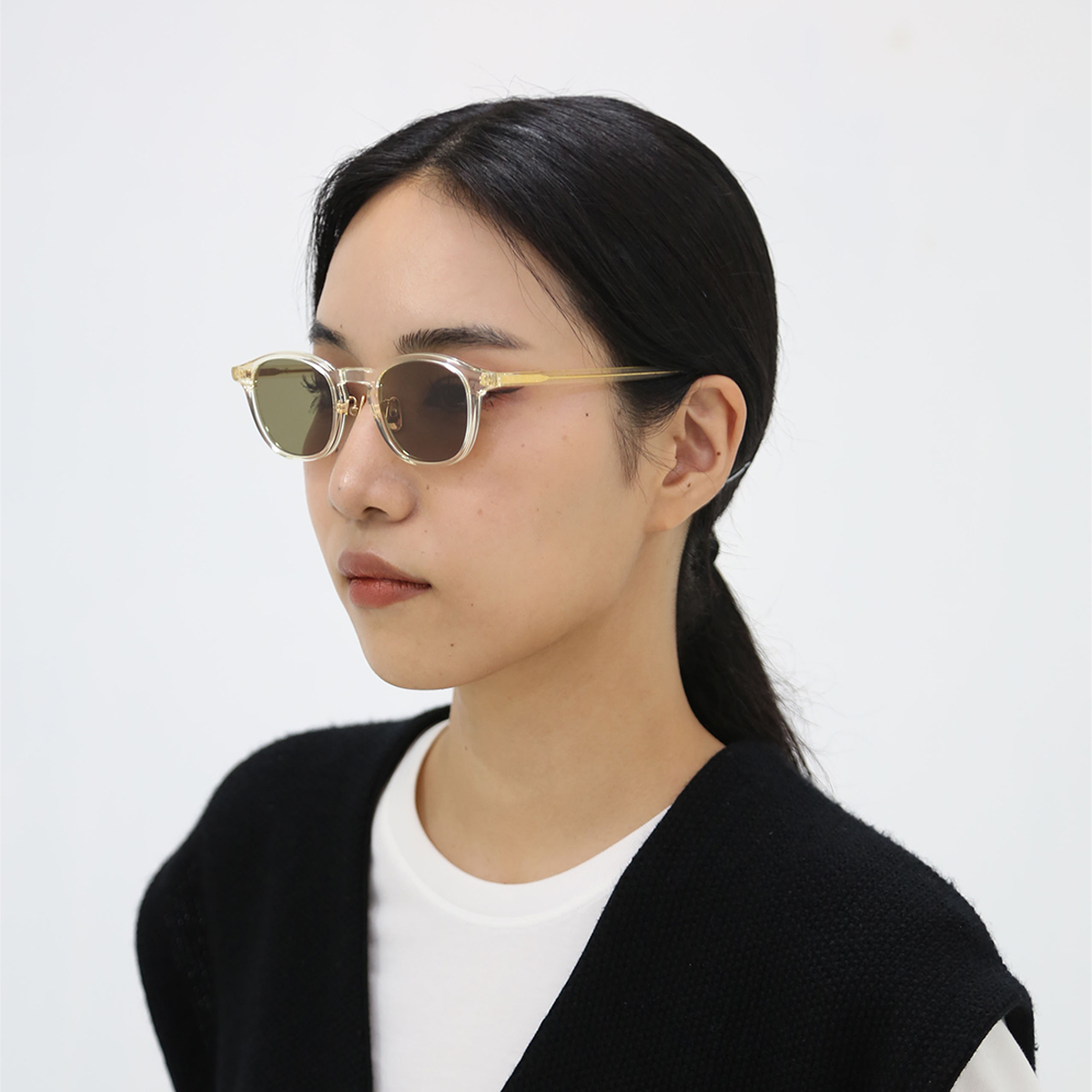 ジェンダーレスなモデルとして徹底的にサイズ感にこだわったボスリントンシルエットのアセテートモデル。