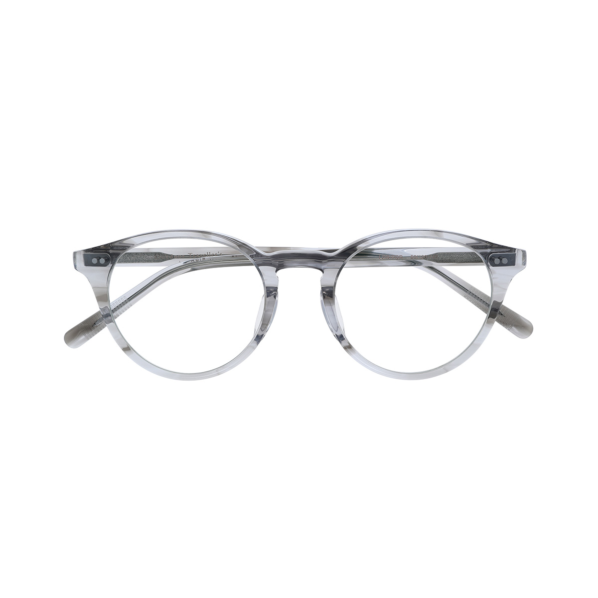 アウトドアを意識した丈夫な設計を心掛け、フロント側もテンプル側も2点のカシメを使用し固定しています。