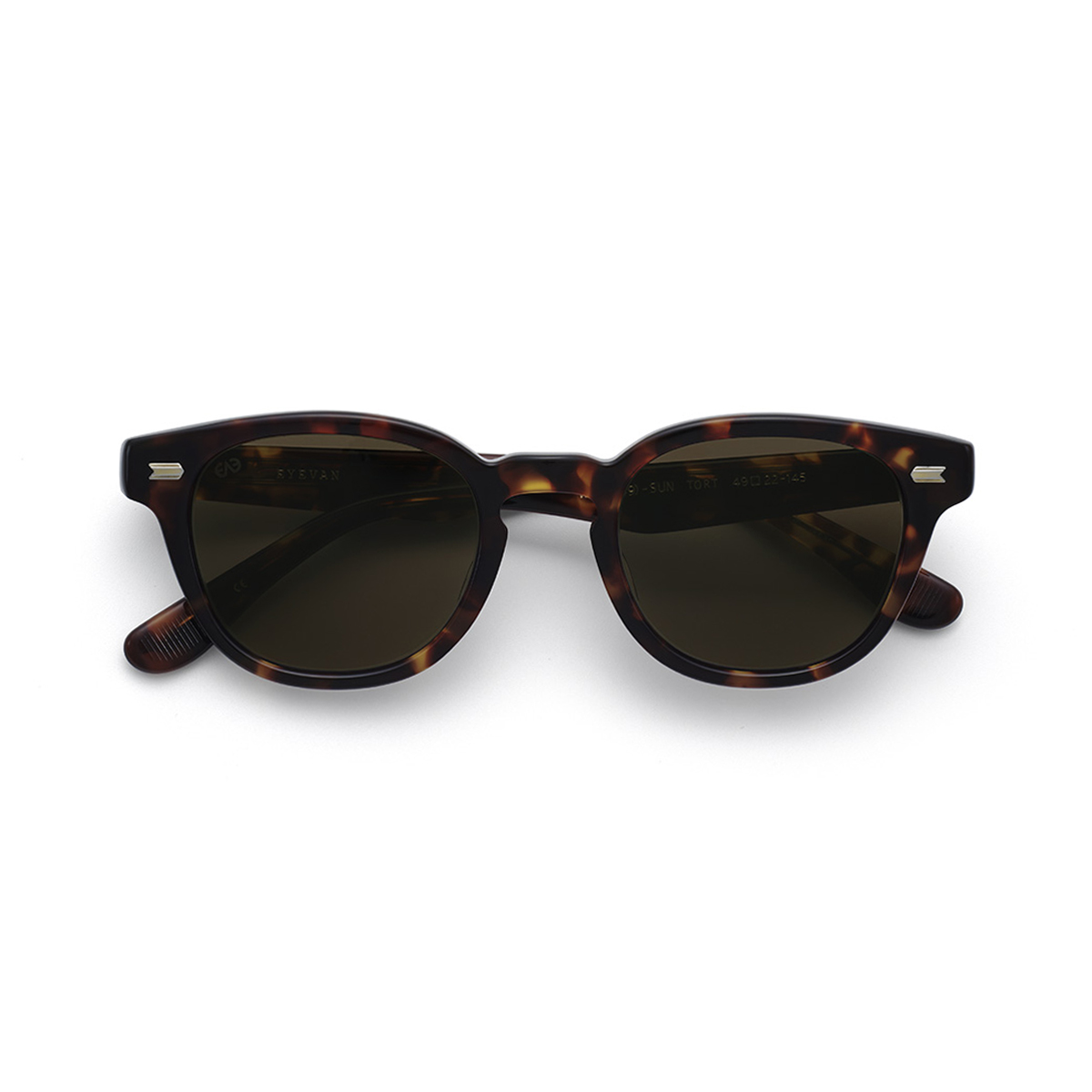 日本人にも馴染みやすいボスリントンシェイプのフロントに、EYEVANオリジナルのカシメ飾り丁番をあしらったサングラス。