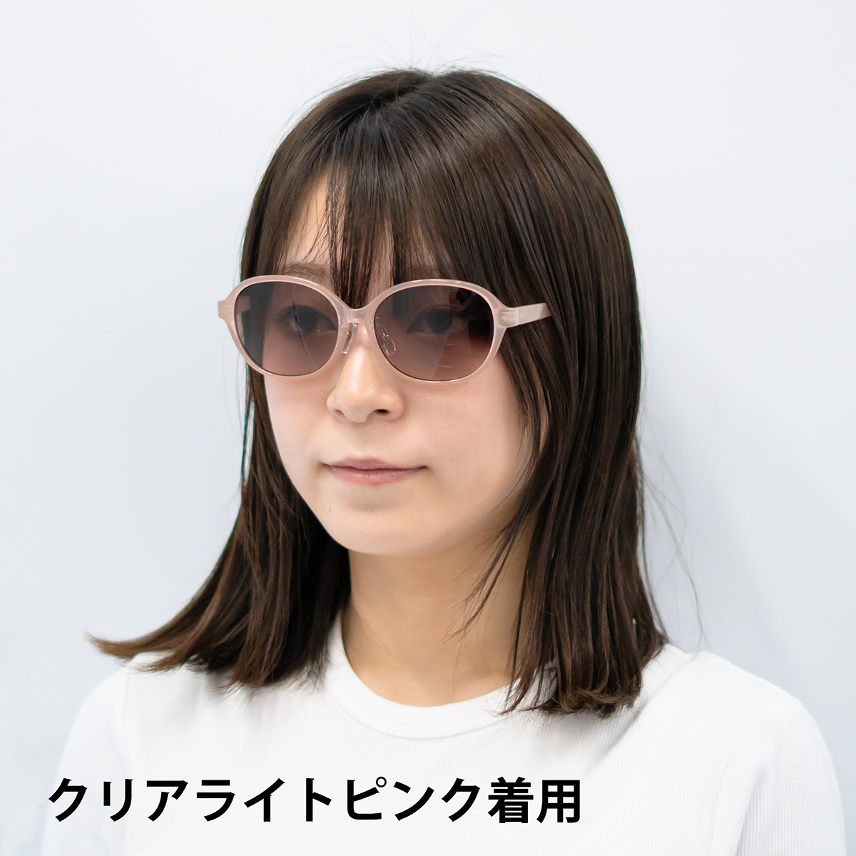 ブラウンやピンク系のフレームと丸みのあるシェイプで、目元を優しい印象にみせてくれます。