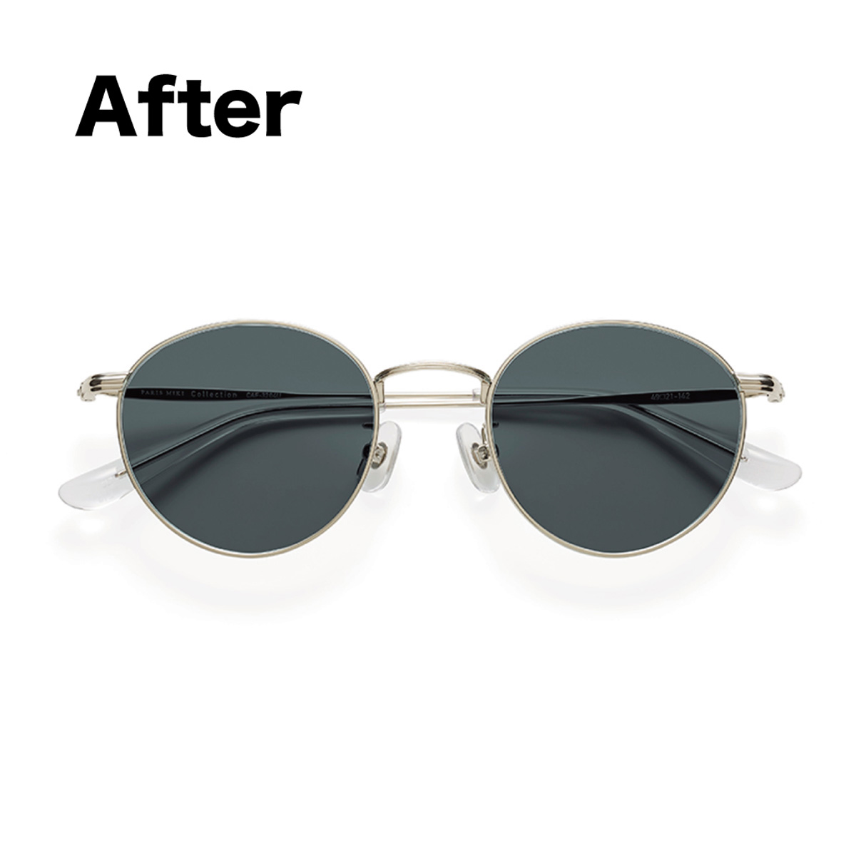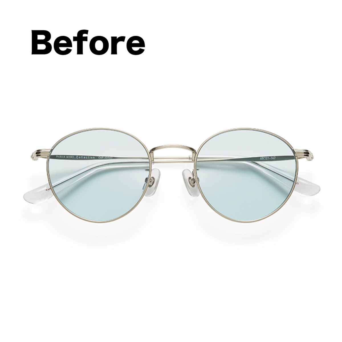 紫外線量によってレンズの色濃度が変化する調光レンズは、屋外ではサングラスとして、夜や屋内ではライトブルーレンズのおしゃれなメガネとして眩しさ対策だけではなくファッションアイテムとして最適です。