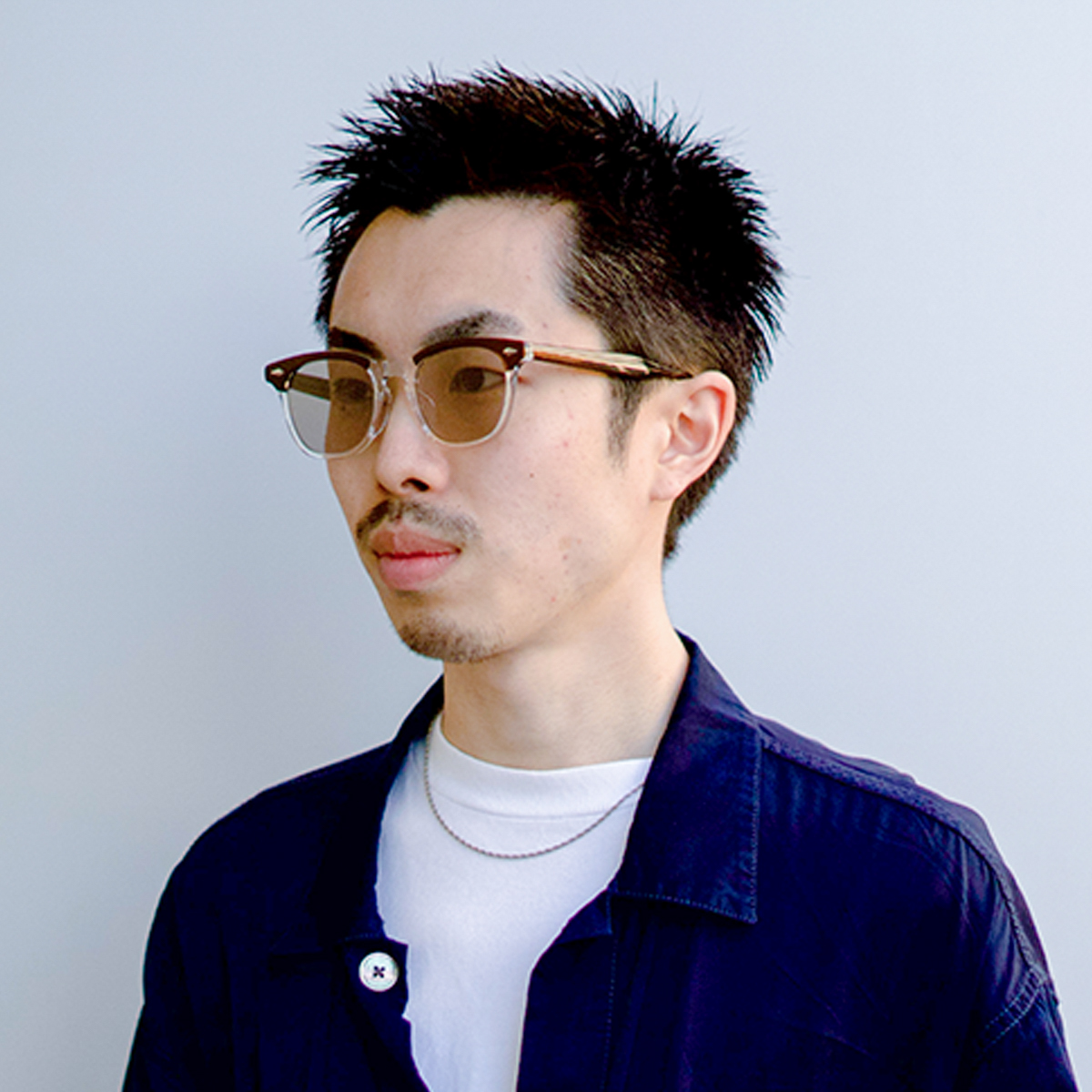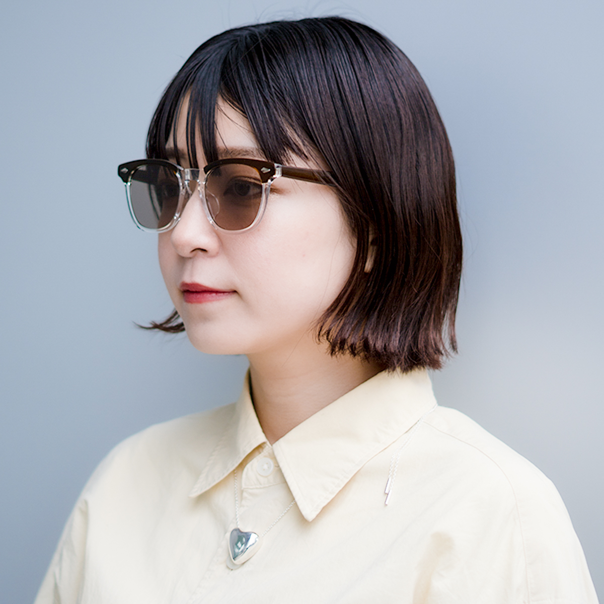 クセのあるデザインですが、お顔馴染みのいいウェリントンシェイプとライトカラーレンズと合わせることで様々なファッションスタイルのアクセントとして活躍できるサングラスです。